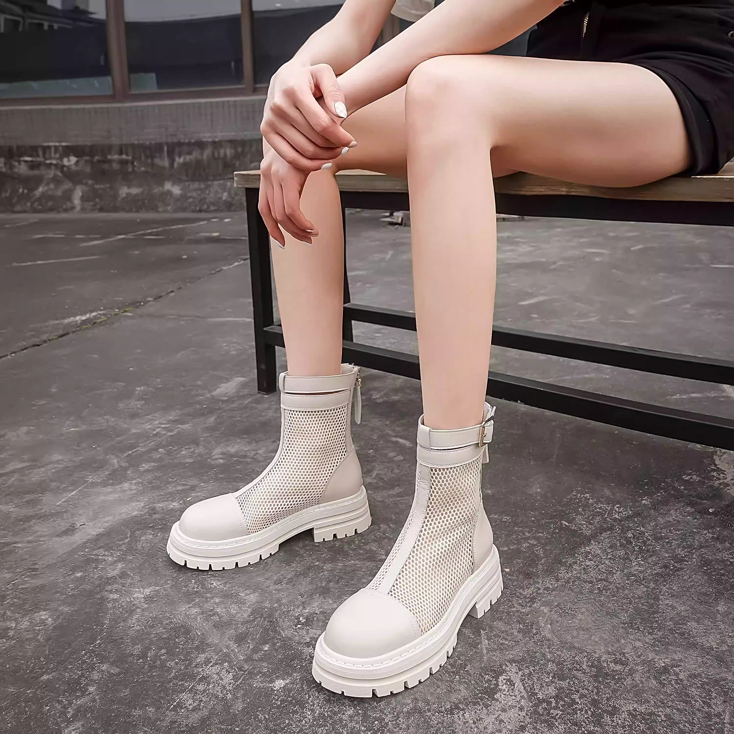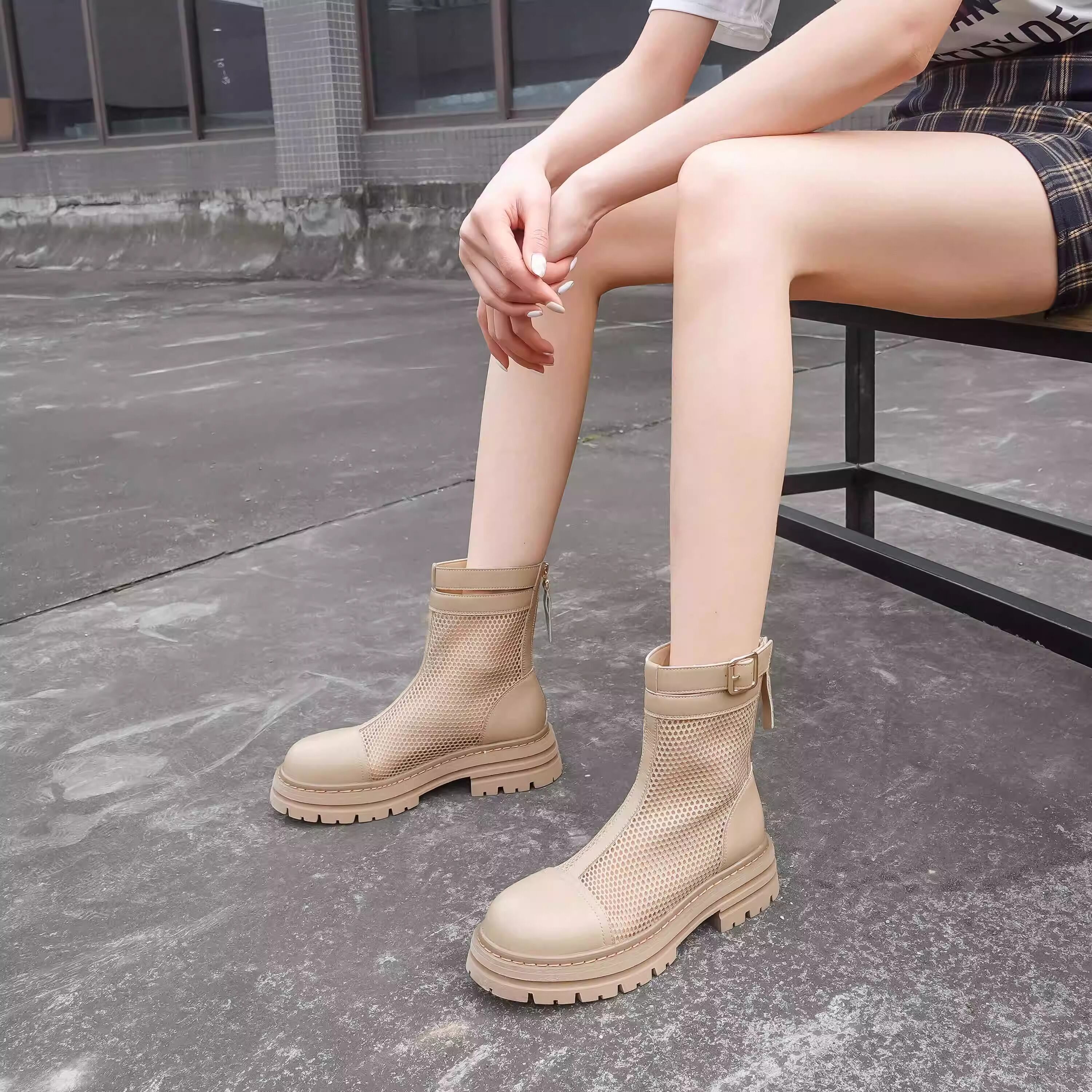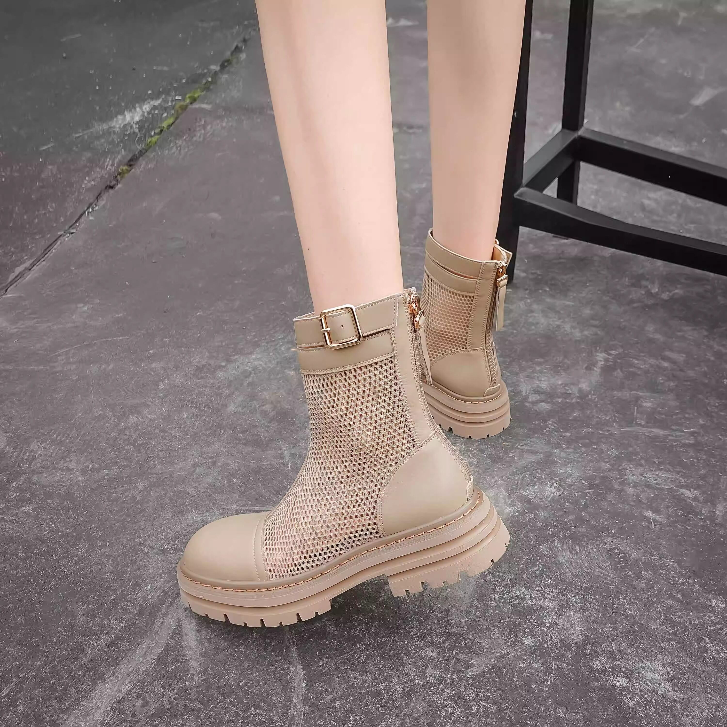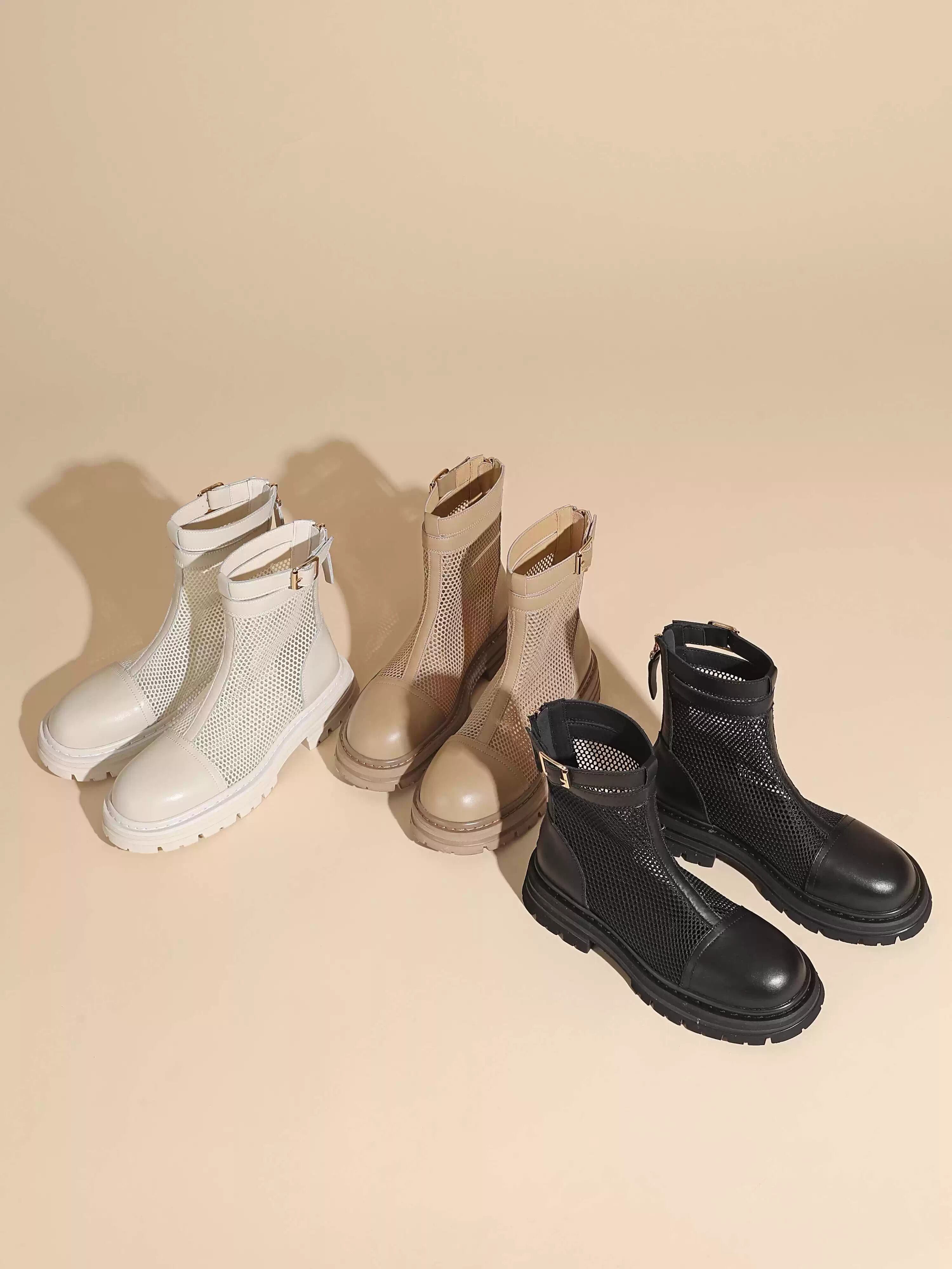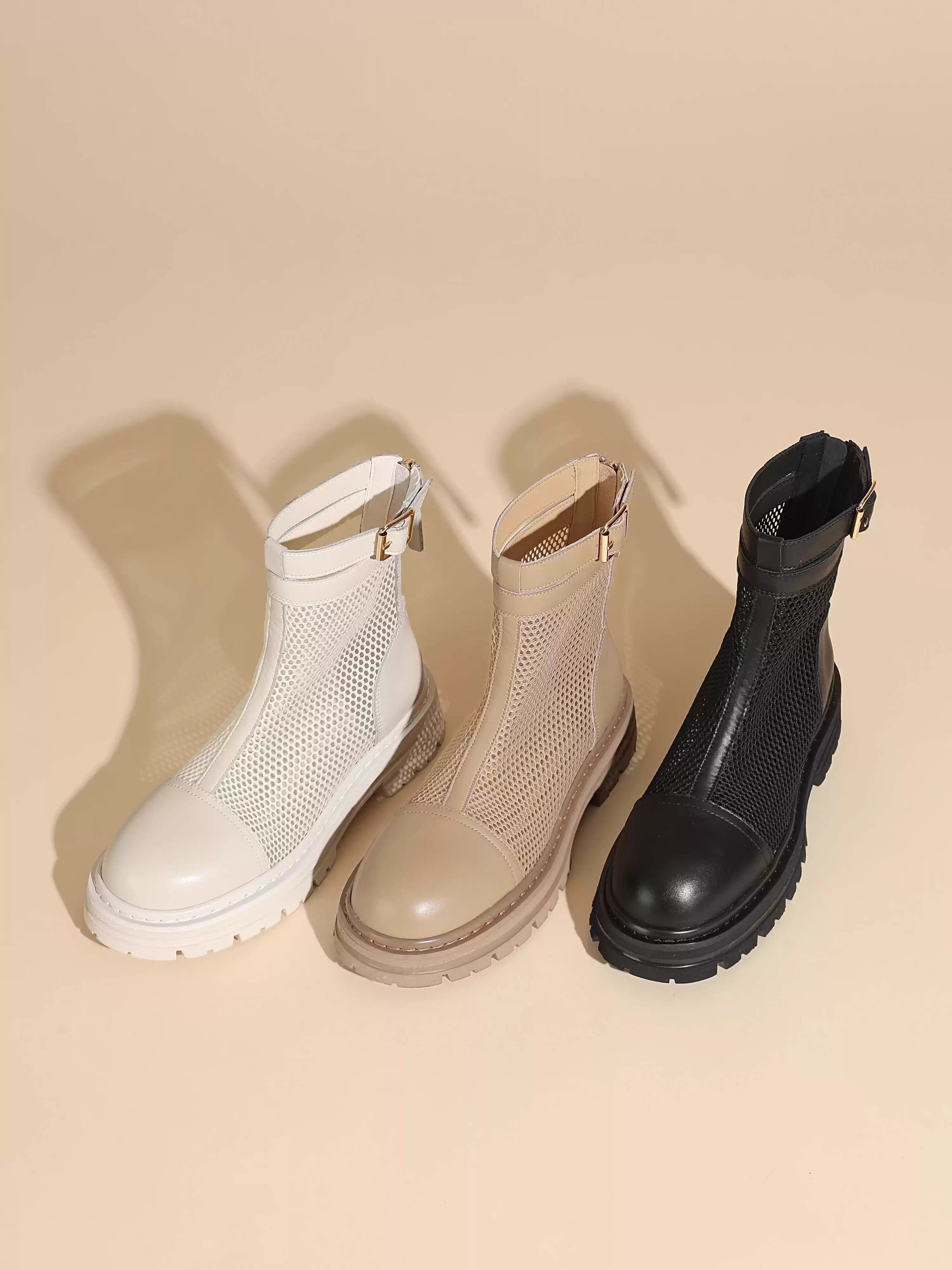 3cmのフラット厚底デザインは、快適な履き心地を実現し、ラウンドトゥが優しい印象を与えます。