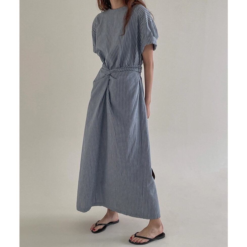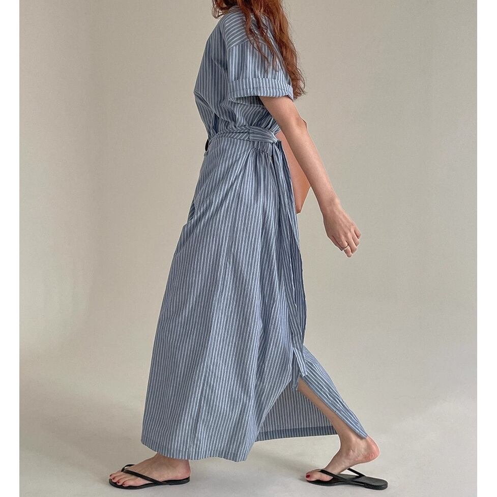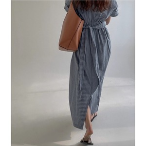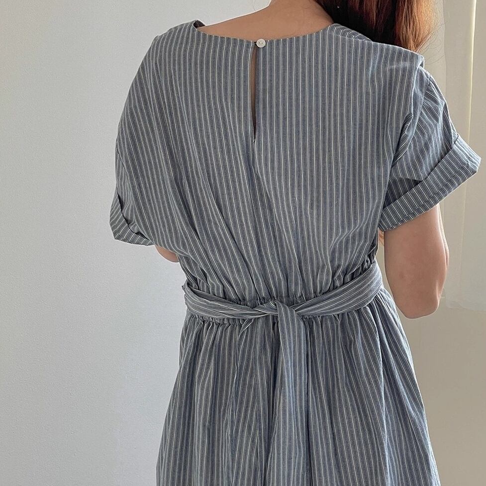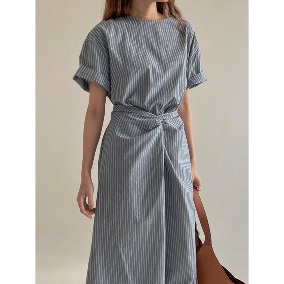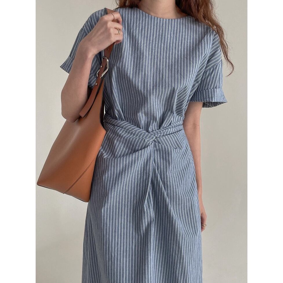爽やかなノーカラー&オールストライプのワンピース。ウエストコンシャスでスタイルアップも叶うデザインです。視覚的なアクセントになりシンプルでありながらインパクトのあるスタイルを演出。すっきりとしたエレガントな印象を与えます。