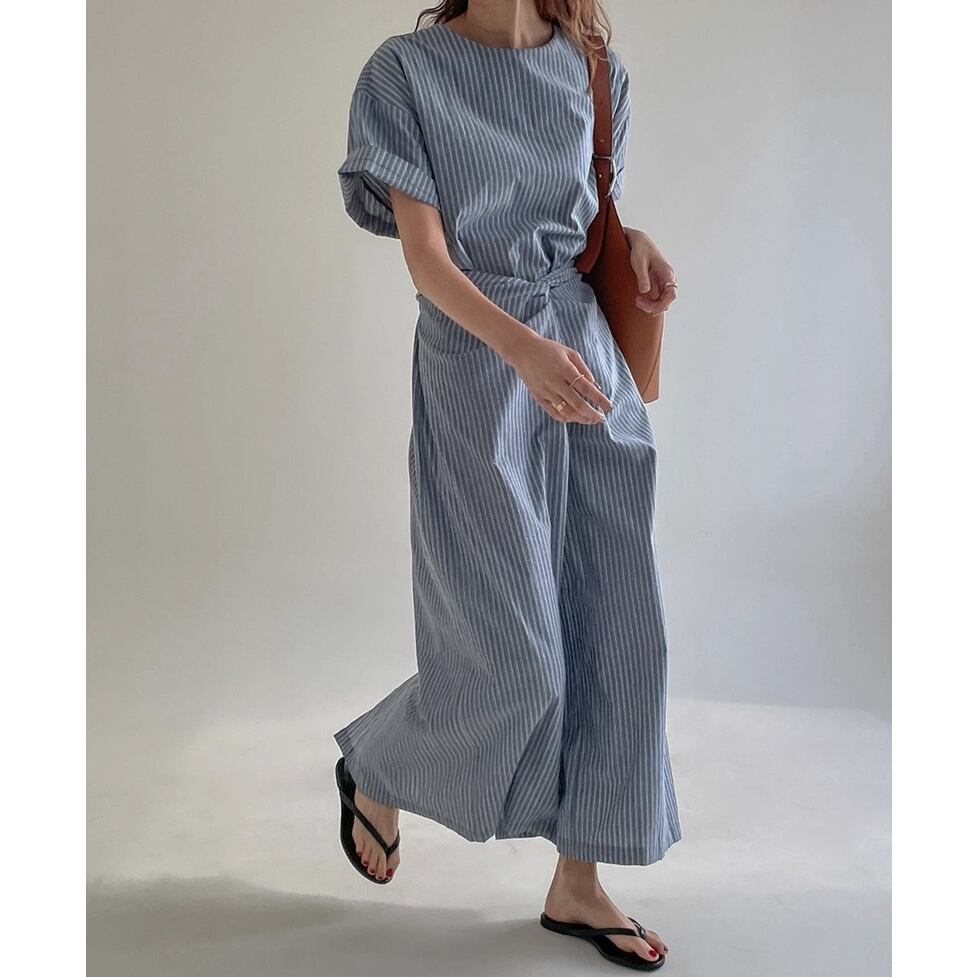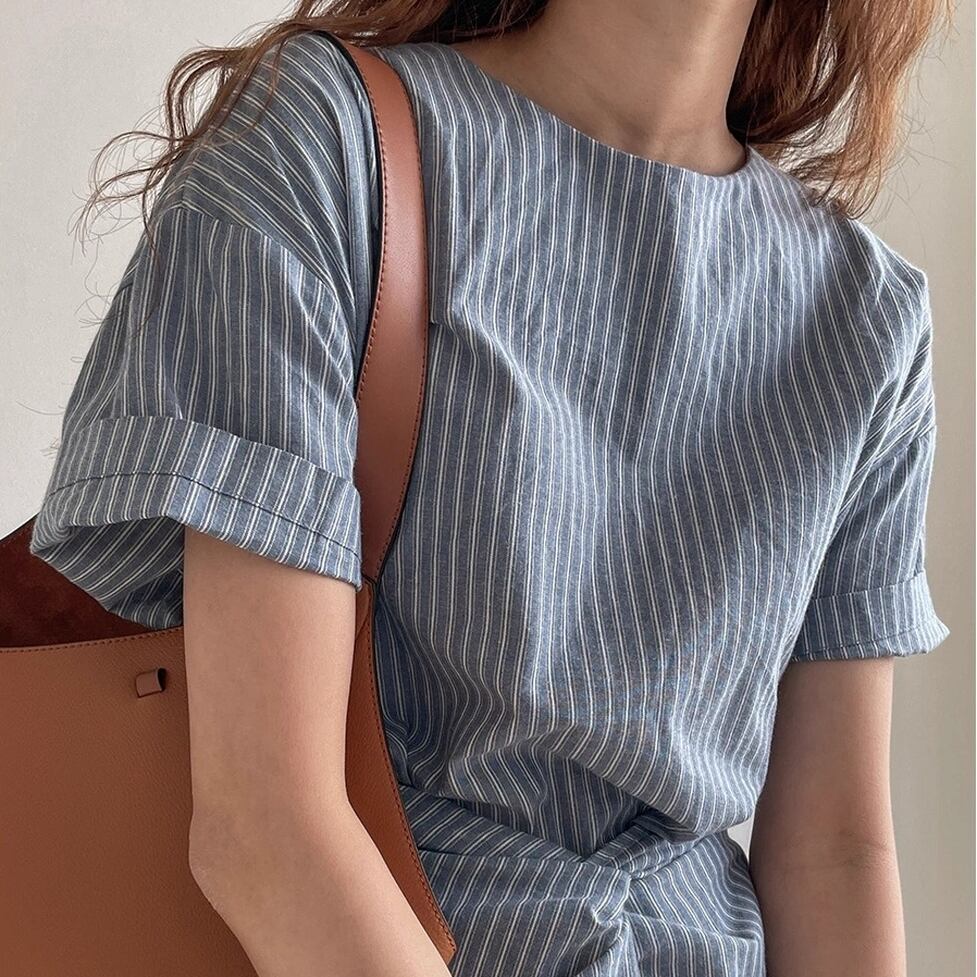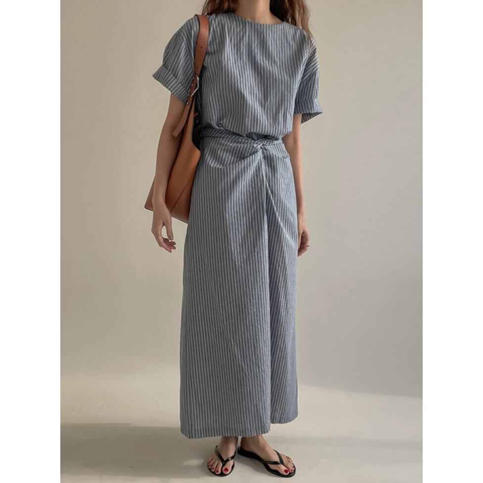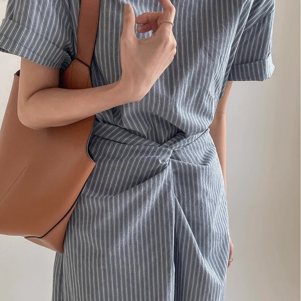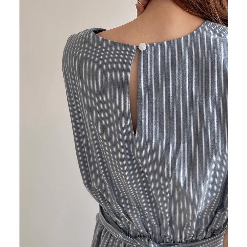 爽やかなノーカラー&オールストライプのワンピース。ウエストコンシャスでスタイルアップも叶うデザインです。視覚的なアクセントになりシンプルでありながらインパクトのあるスタイルを演出。すっきりとしたエレガントな印象を与えます。
