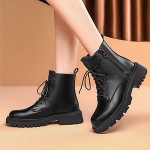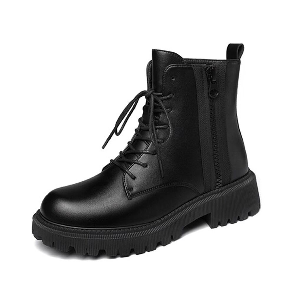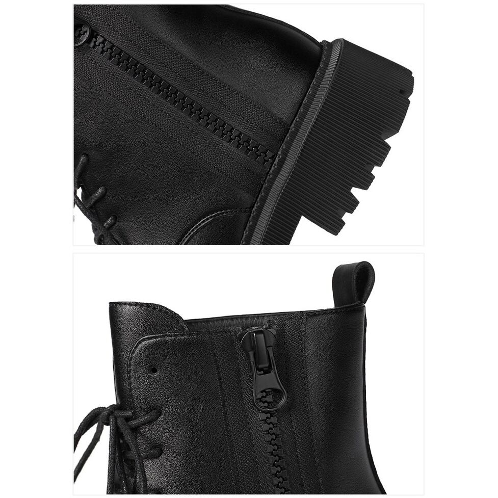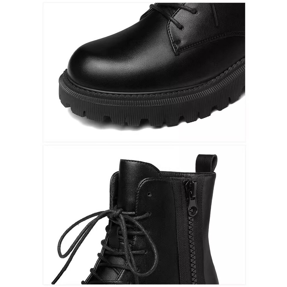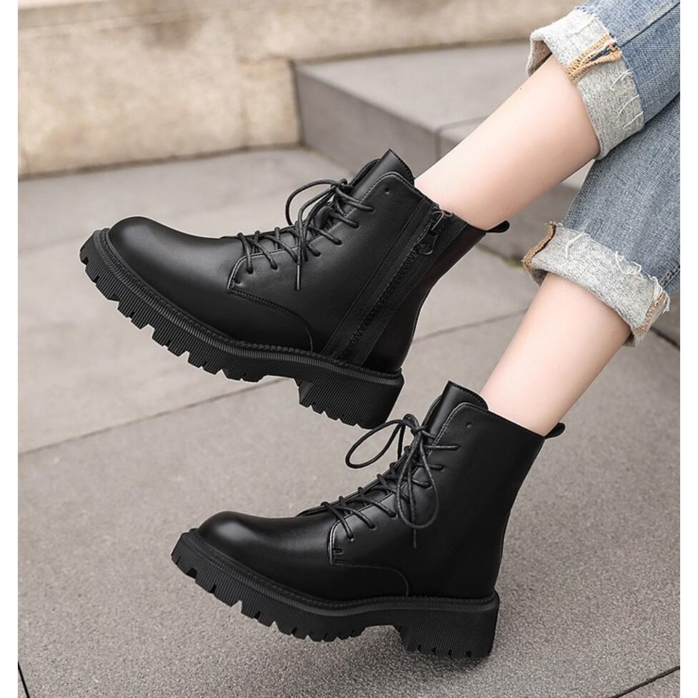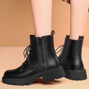 上質なツヤ感があり高級感漂うレザー調レースアップブーツ。サイドファスナーで着脱が楽ちん。カジュアルにもキレイ目にもマッチしてどんなコーデも好相性のシンプルデザイン。マニッシュなのにカジュアルになりすぎない万能アイテム。幅広いコーディネートのハズしとして活躍。