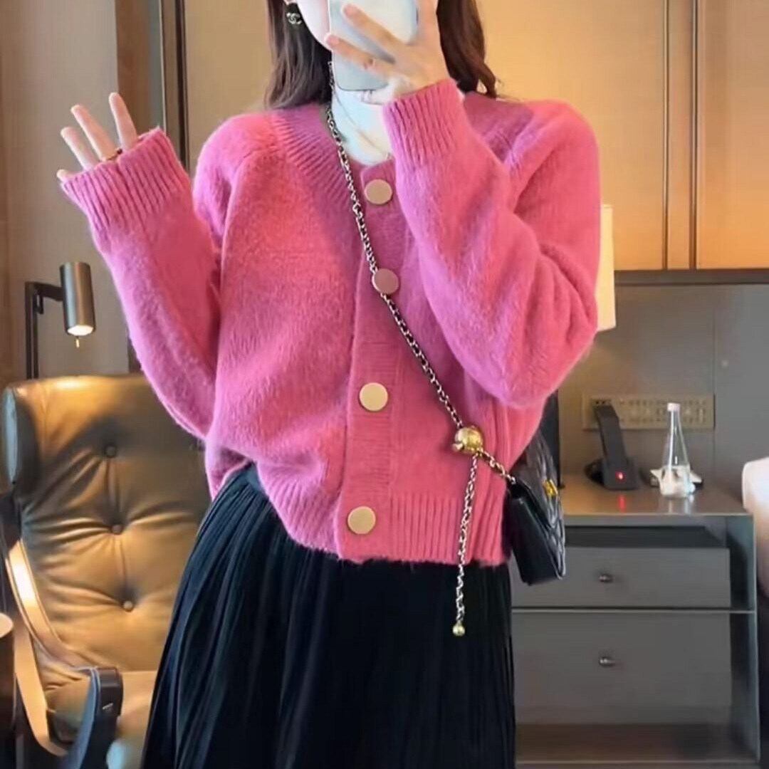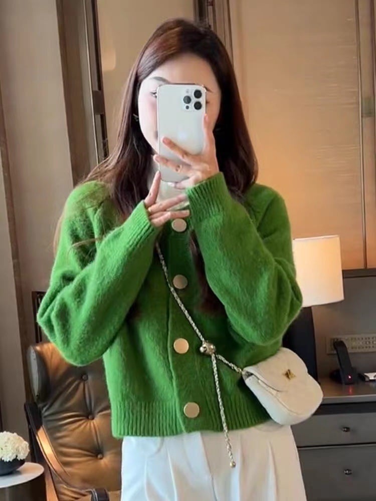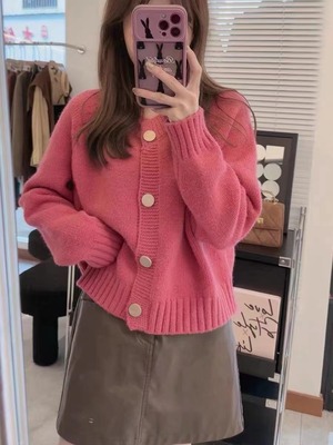 ふんわり柔らかなニット素材が魅力のショートカーディガン。