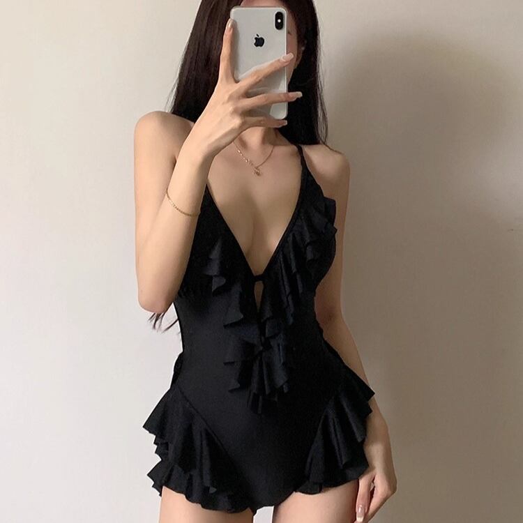 体型カバー力とセクシーさを兼ね備えた水着。大人かわいいデザインで、どんなビーチやプールシーンでもおしゃれに決まります。伸縮性があり、快適な着心地でスタイルアップを実現してくれる優れものです。シンプルでありながら、モノトーンのブラックがクールでスタイリッシュな印象を与え、大人の魅力を引き立てます。