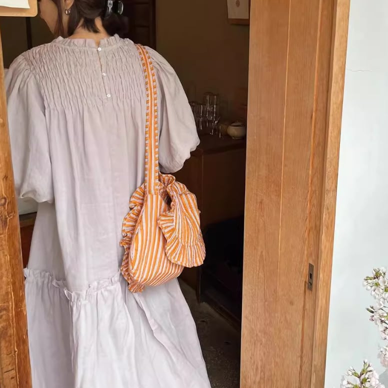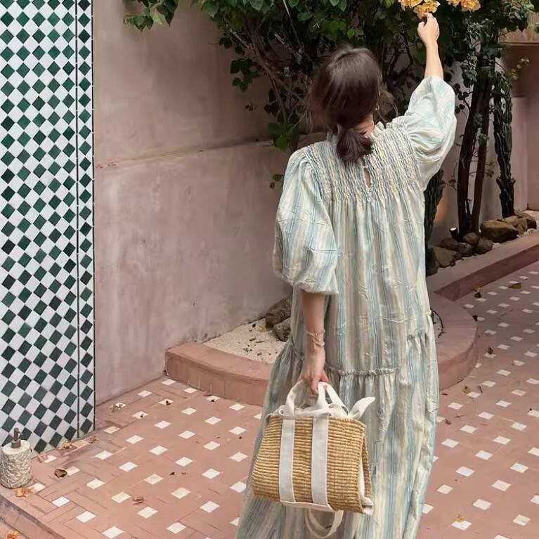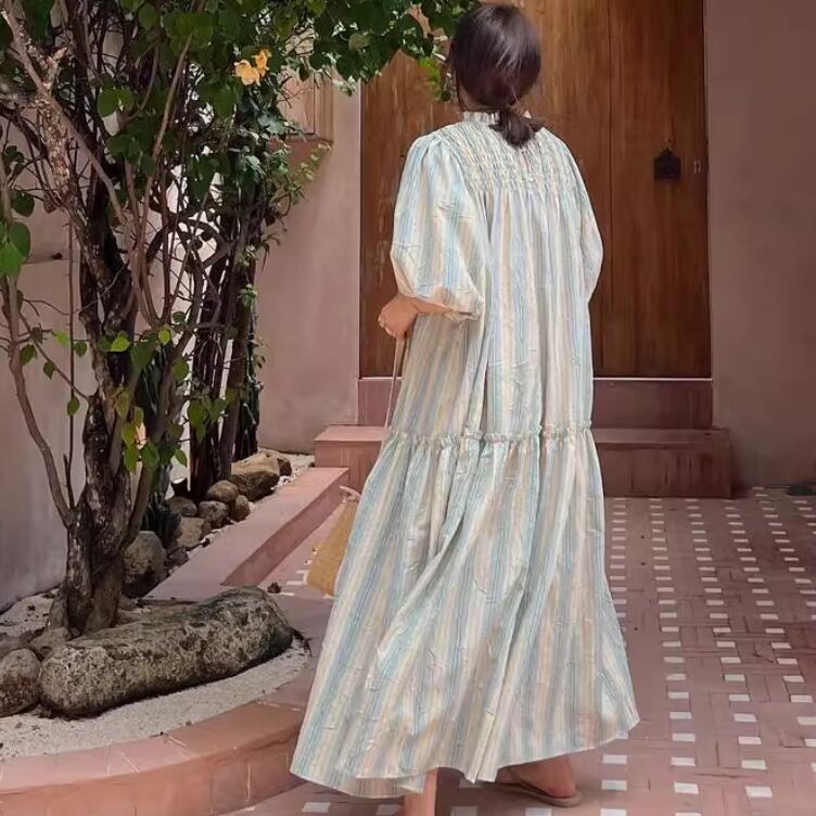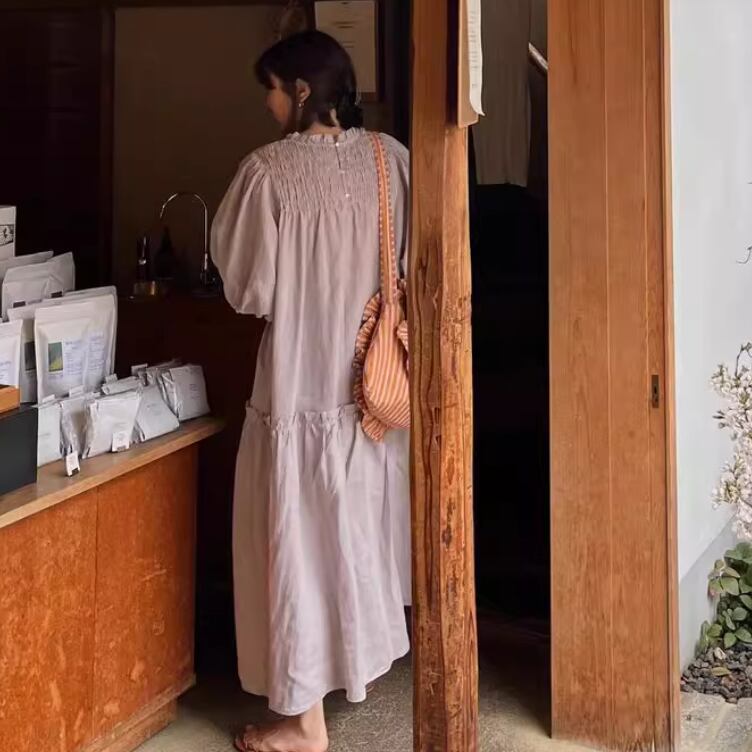ゆったりとしたワイドなシルエットの半袖ワンピース