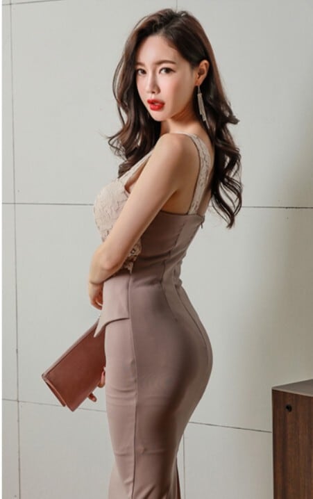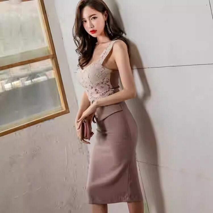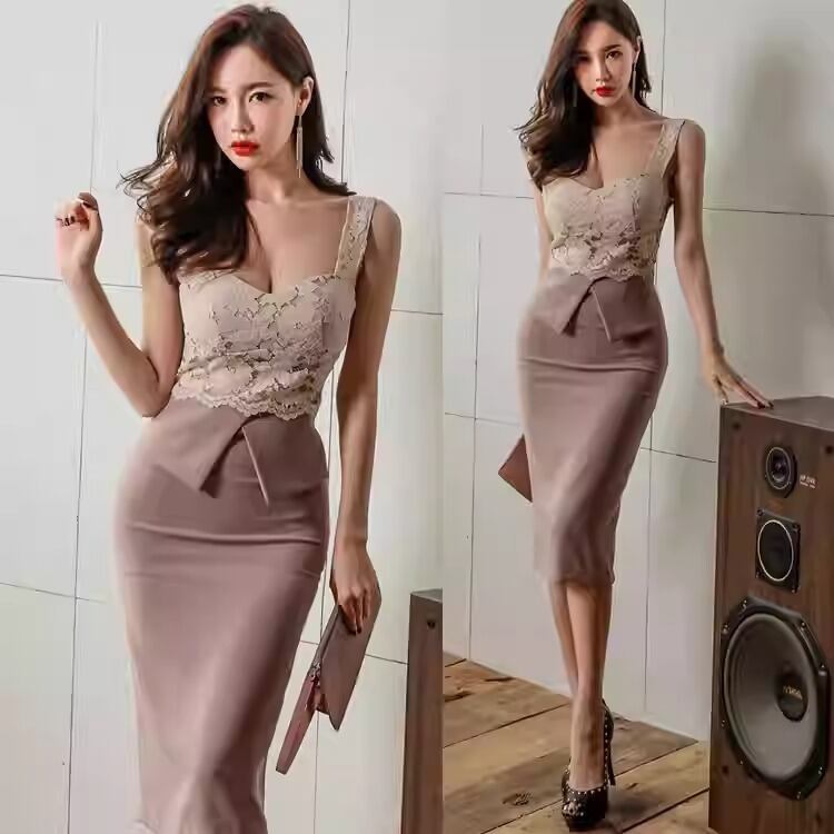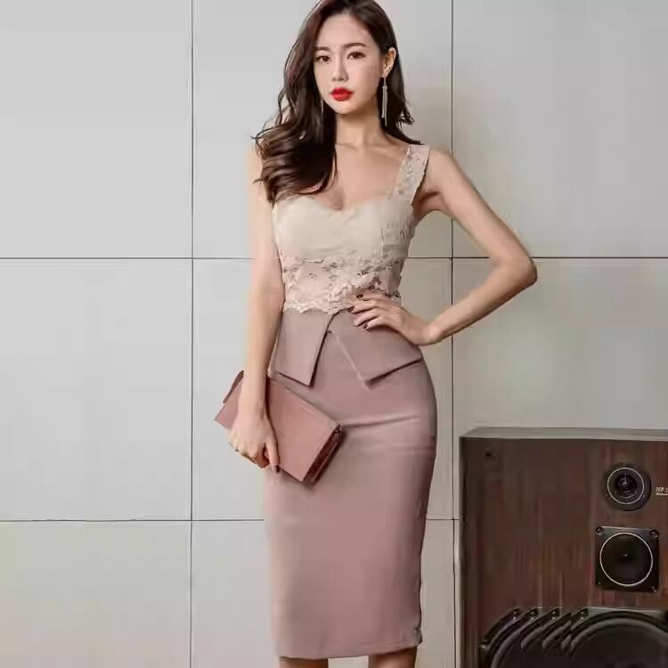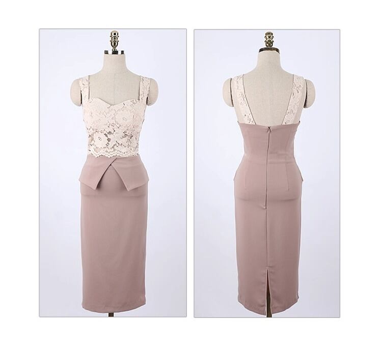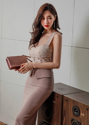 上品なレーストップとタイトスカートの組み合わせが、女性らしいシルエットを際立たせるエレガントなワンピース。ウエストラインを美しく見せる計算されたデザインで、自然とスタイルアップが叶います。