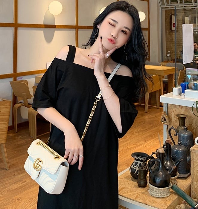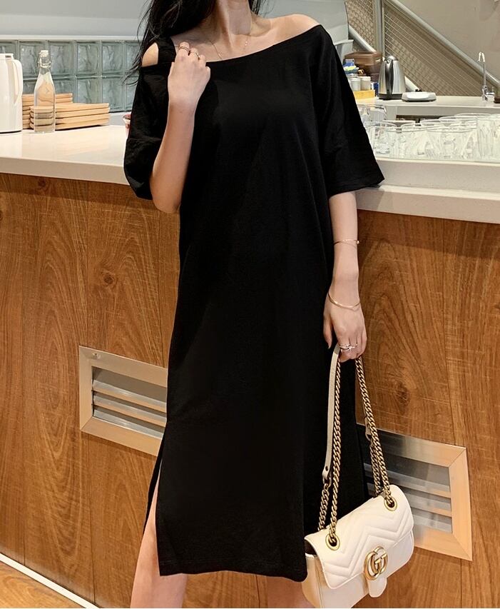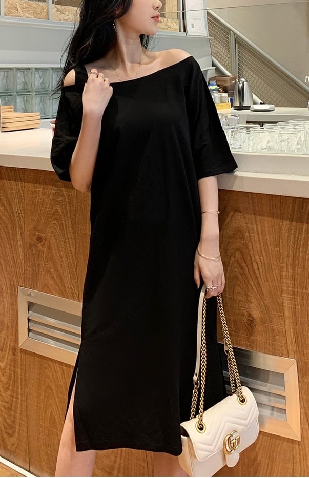 この魅力的なオフショルダーワンピースは、フレアなデザインと膝丈のバランスが女性らしさを引き立て、デイリーから特別な日まで幅広く活躍します。5分袖とオフショルダーの仕様が、上品さを保ちながらもセクシーさを演出。サイドスリットがアクセントとなり、軽やかさとこなれ感をプラスしております。シンプルでありながら、存在感のあるデザインがポイントです。