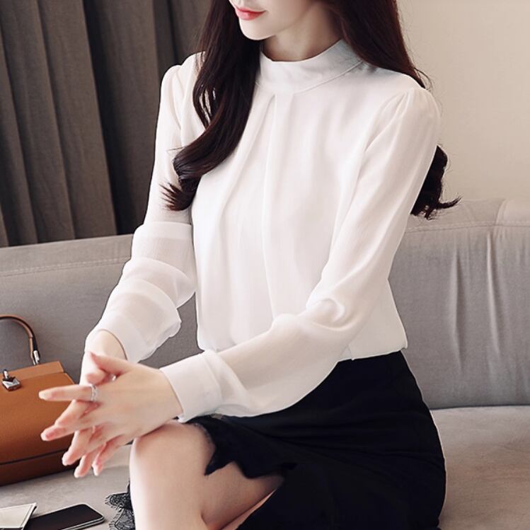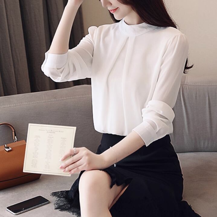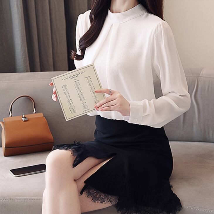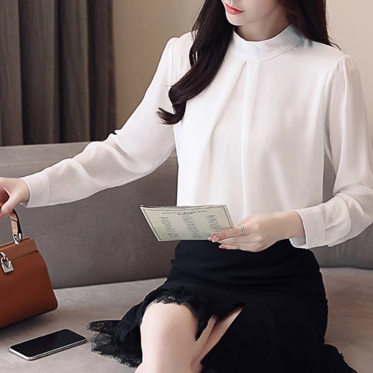 大人可愛いエレガントスタイルの長袖シフォンシャツ