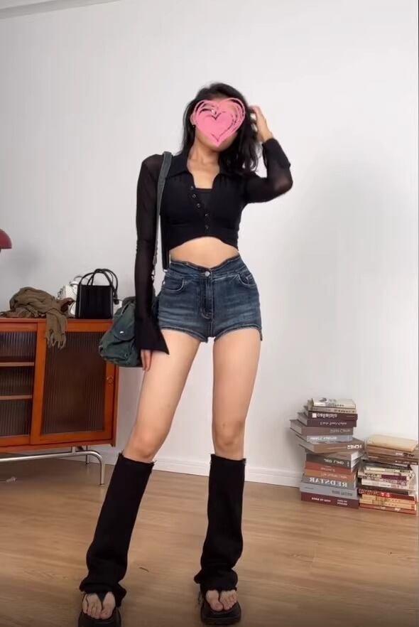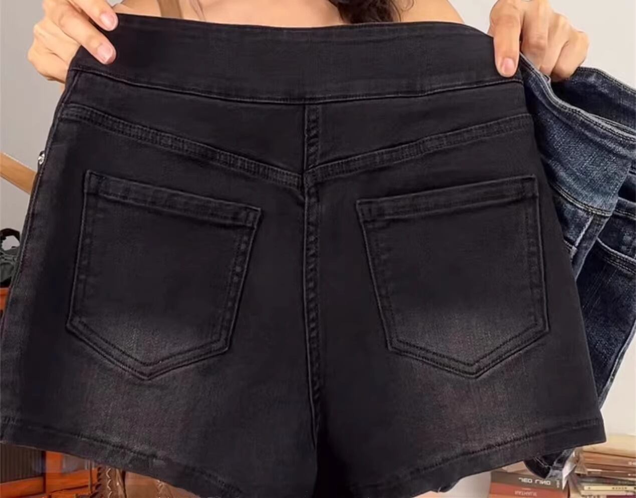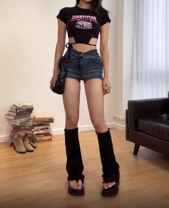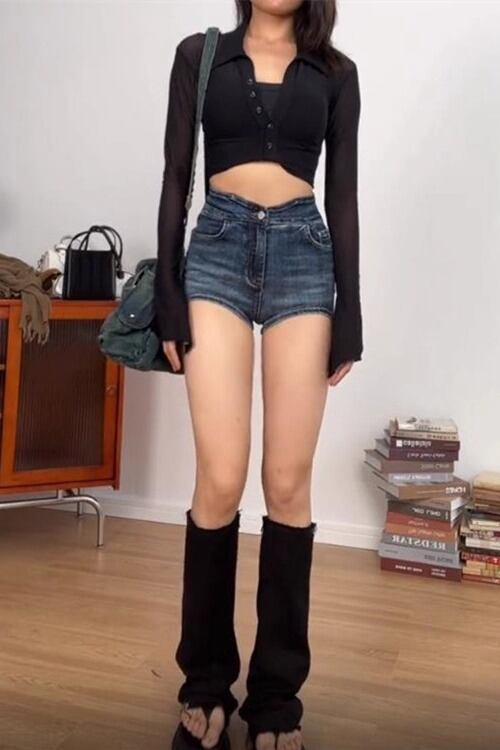 高めのハイウエストとタイトなシルエットがこのショートパンツの特徴です。