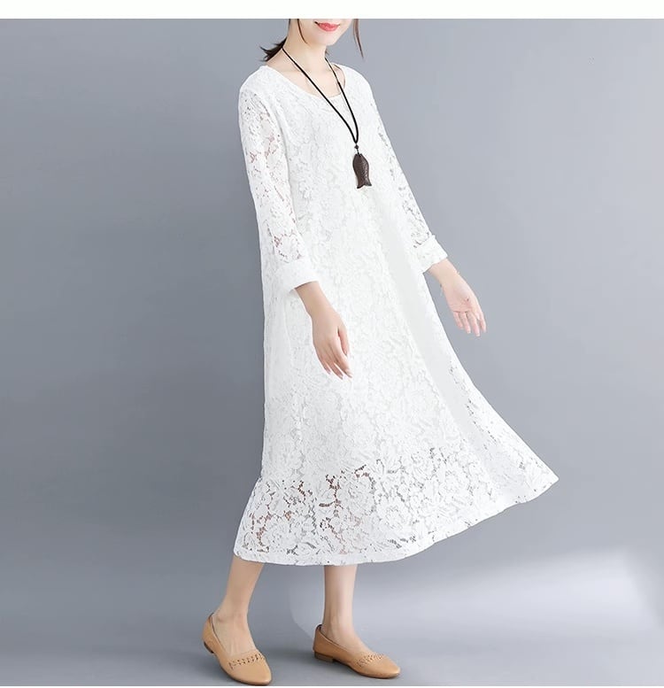 シンプルでありながらも大人可愛い印象を与える、長袖のワンピースドレス!繊細なレースアップデザインと透け感が、フェミニンさを引き立てます。春夏秋冬、オールシーズン着用できるため、誕生日、お祝い事、入学式、卒業式、結婚式、二次会と様々なシーンで活躍すること間違いなしです。 着るだけで一気におしゃれ度がアップし、体型カバーも叶えてくれるスタイル。ゆったりとしたシルエットが魅力で、上質な印象を与えます。 色展開 ホワイト レッド ブラック ピンク パープル アプリコット グレーブルー サイズ M L XL 2XL 3XL サイズ(cm) M /着丈 107 /肩幅 38 /バスト 96 L /着丈 108 /肩幅 39 /バスト 100 XL /着丈 109 /肩幅 40 /バスト 104 2XL /着丈 110 /肩幅 41 /バスト 108 3XL /着丈 112 /肩幅 42 /バスト 118 <商品について> 当ショップの商品は、海外で製造されたノーブランド品となっております。 日本製品と比べて、品質基準が異なります。 ほつれ、軽微な汚れやシミ、ファスナーのかたさ、細かな仕様の違いなどが見られる場合がございます。 海外製品の特性上、不良品には該当いたしませんので、あらかじめご了承ください。 また、お使いの端末や閲覧環境により、実物と色味が異なって見える場合がございます。 <発送について> 商品はすべてお取り寄せとなります。ご入金確認後、お届けまでに通常10~24日程度のお時間をいただいております。 メーカーの在庫状況により、通常よりもお時間をいただく場合もございます。 また、欠品や商品不良などにより、商品がご用意できず、やむを得ずご注文をキャンセルさせていただく場合がございます。その際は、速やかにご返金させていただきます。 <返品・交換について> ご注文確定後のキャンセル、サイズ・カラー等の変更はお受けしておりません。 内容をご確認のうえ、お間違いのないようご注意ください。 返品・交換は商品に不良がある場合を除き、お受けしておりません。 欠品により交換をお受けできない場合は、代替品との交換または、返金とさせていただく場合もございます。 以上、何卒ご理解のほど、よろしくお願い申し上げます。 最後までご覧いただき、誠にありがとうございました。 N-NBL-A03365