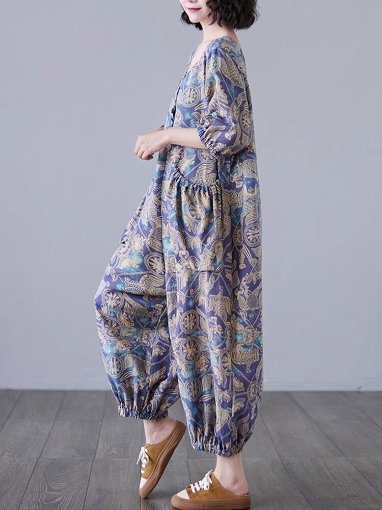 ゆったりとしたシルエットが魅力のレディースオールインワン。