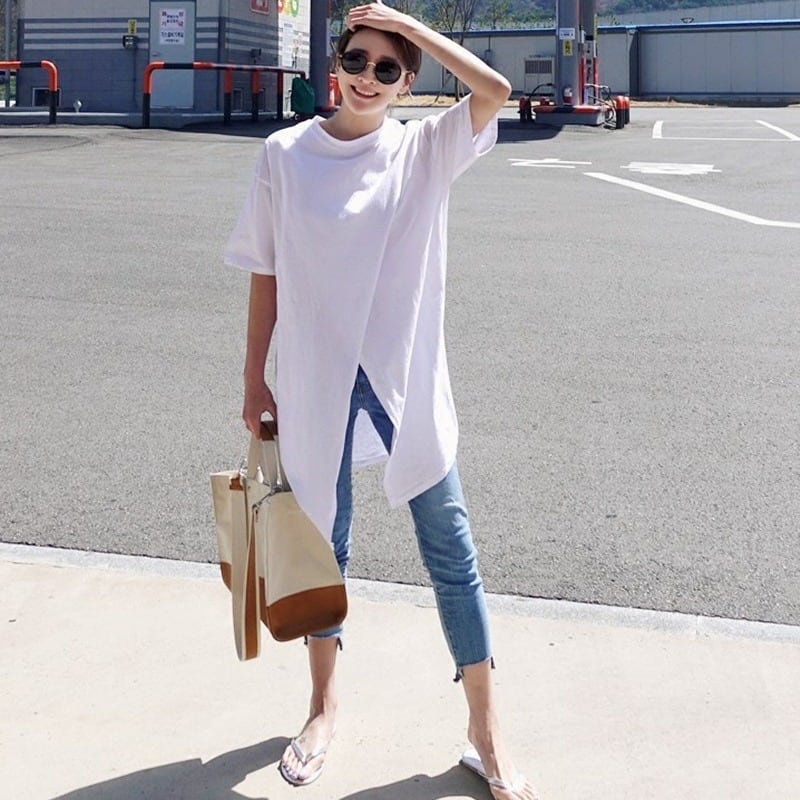軽やかな抜け感が魅力のチュニック丈カットソー。