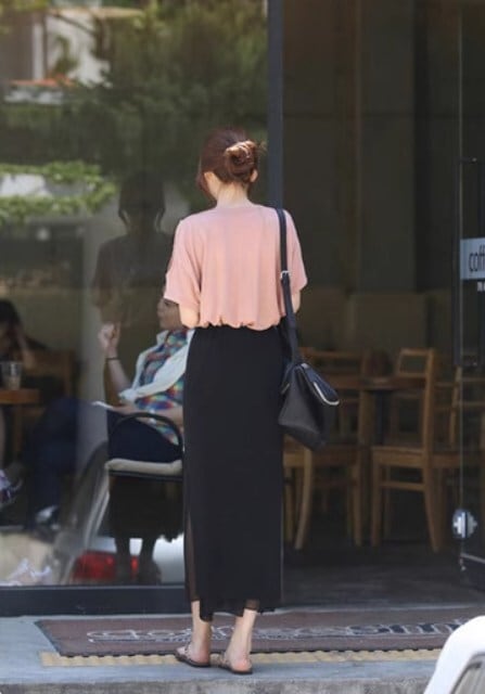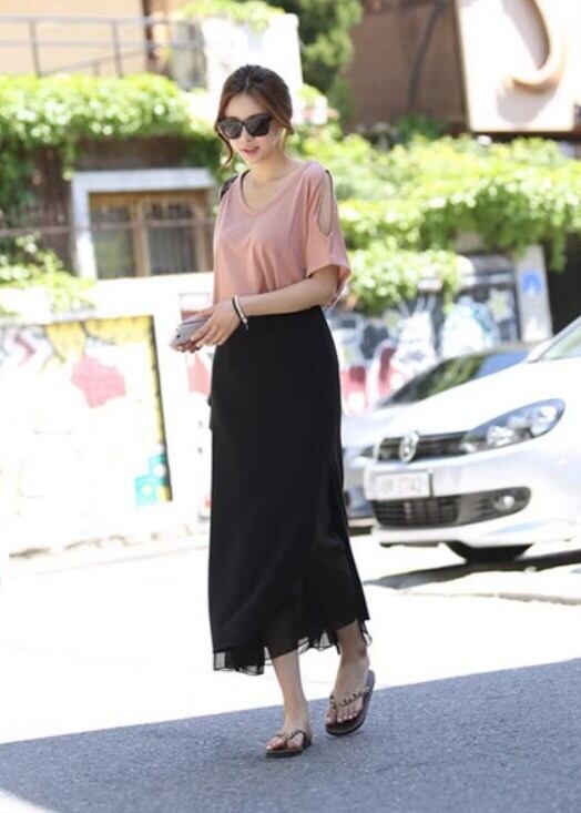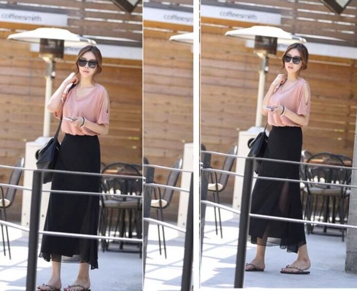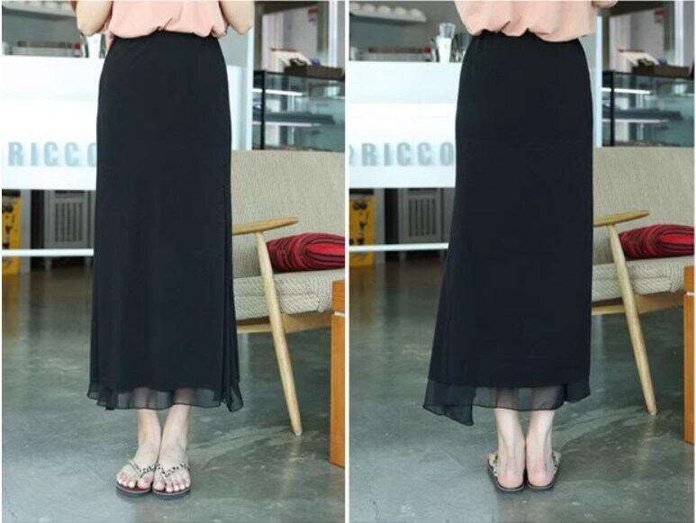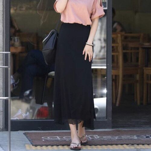 軽やかな透け感が魅力のミモレ丈Iラインスカート。