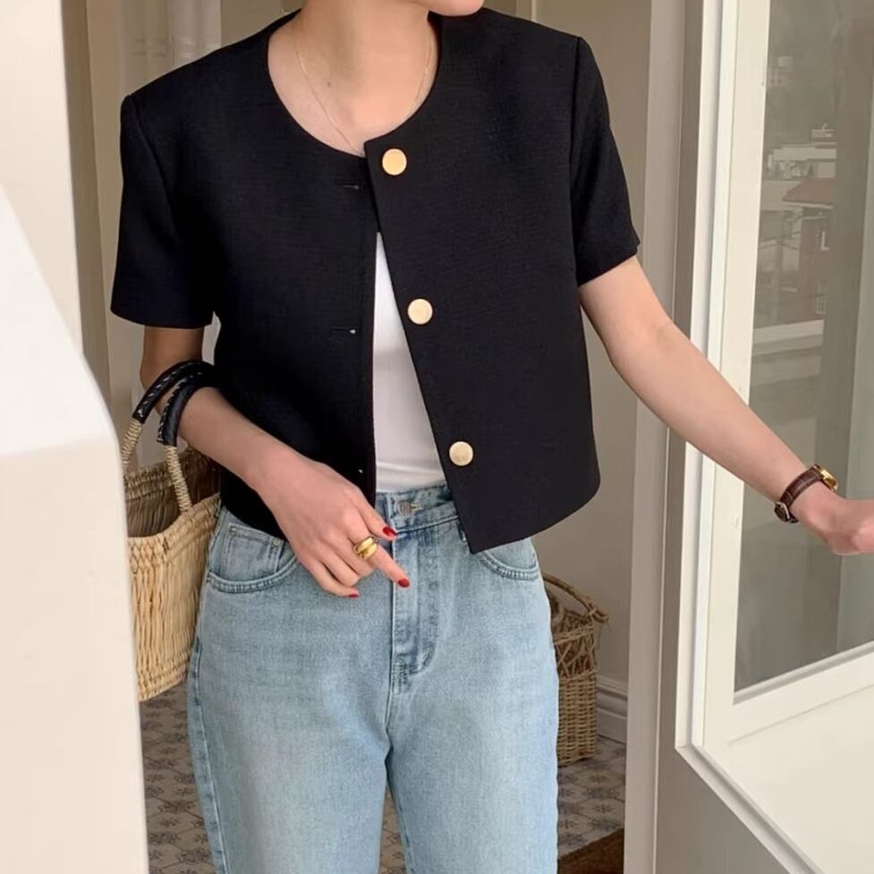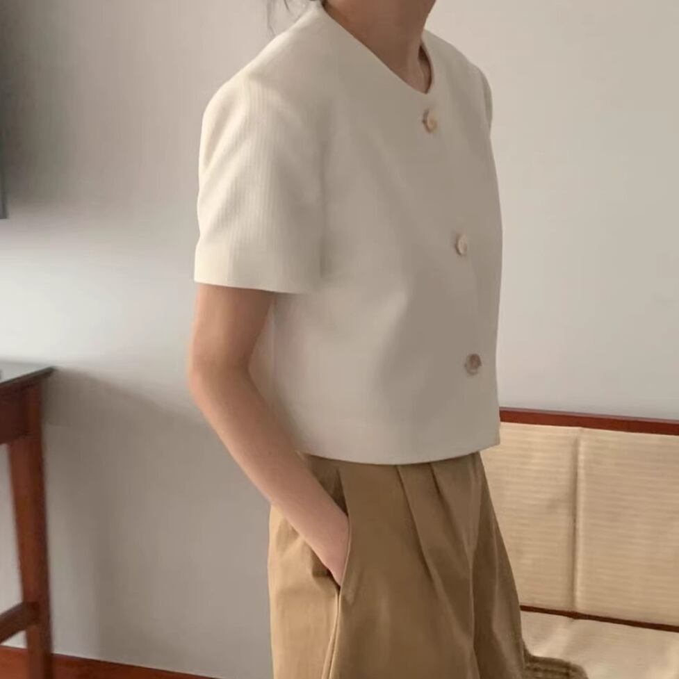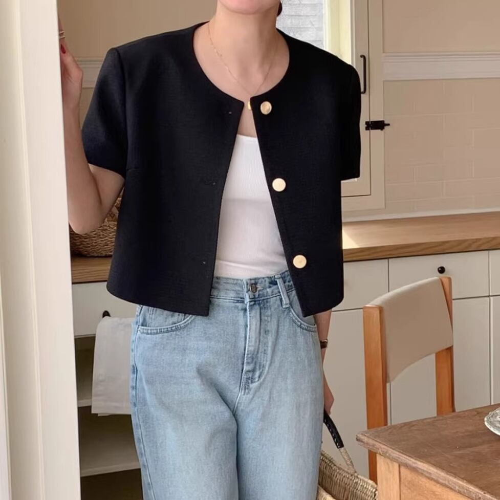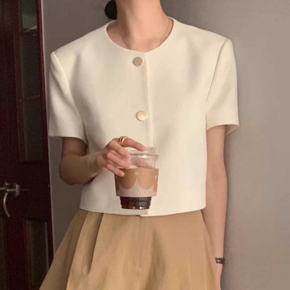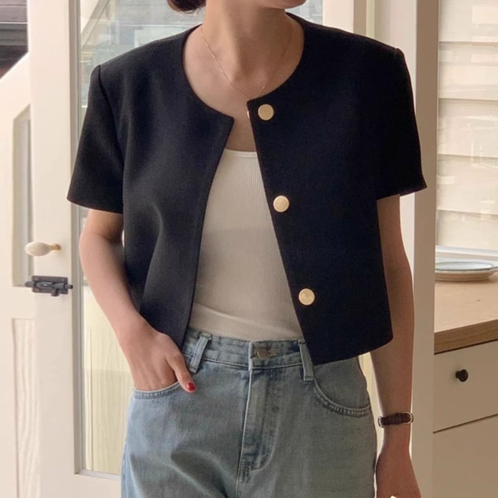 ラフに羽織れる涼しげなジャケット。フロントに並ぶアンティーク調の金ボタンが大人上品。ノーカラーデザイン×ショート丈ですっきりした見た目に。スタイルUPを叶えてくれます。デイリーからオフィスカジュアルまで幅広いスタイリングを楽しめる1枚です。普段使いやちょっとしたお出かけの日にも幅広く活躍間違いなし。