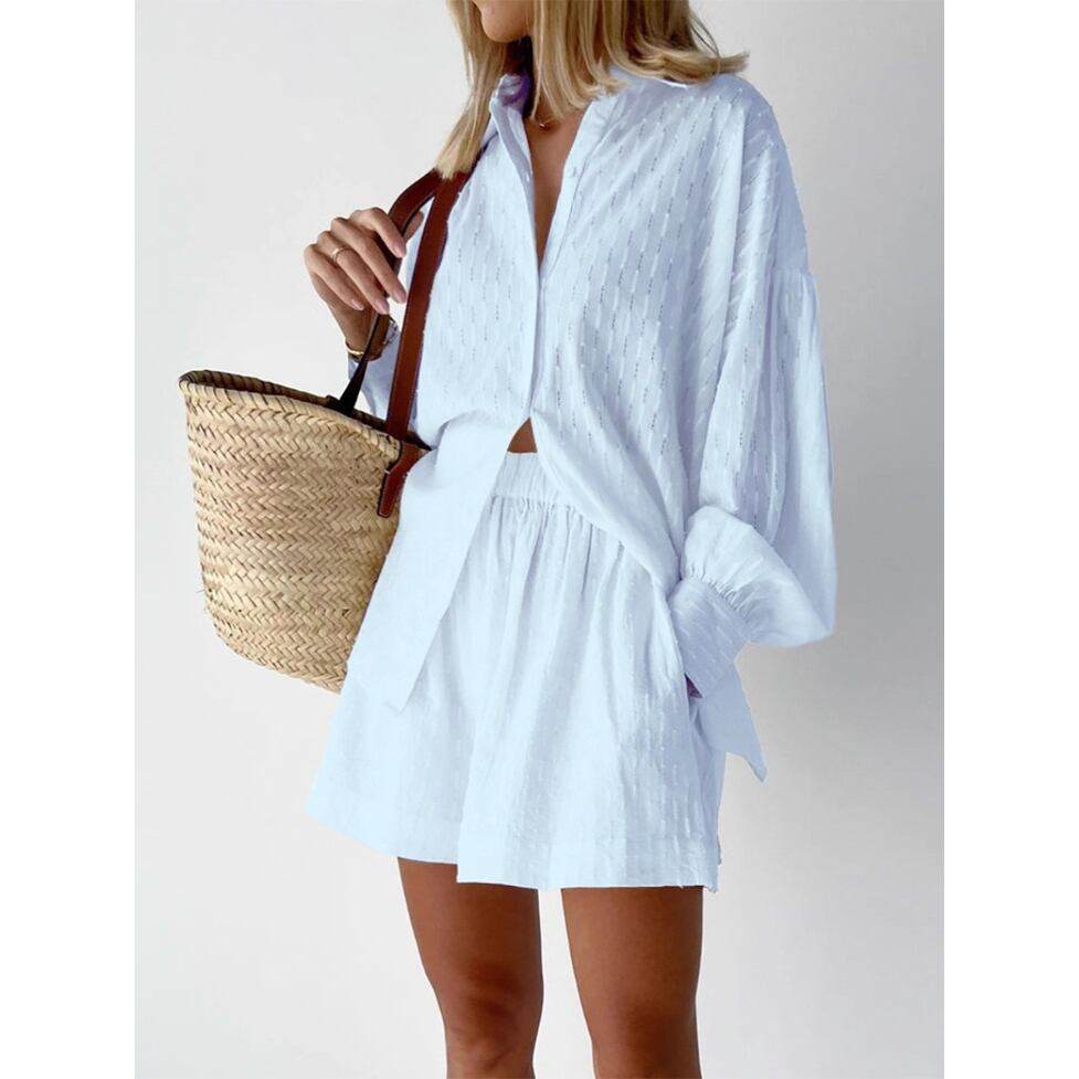 オリジナルのメッシュ風の透け感でワントーンの総柄がさわやかなショートパンツセットアップ。ゆったりシルエットで程よくルーズなこなれ感を演出します。シックでスタイリッシュに過ごすのに最適です。セットで簡単にコーデが決まるのはもちろん単品でも使いたいほどの独特の素材感ながらシンプルな着回し力もポイントです。 カラー ブラック スカイブルー カーキ パープル イエロー ピンク ネイビー ミストグリーン ホワイト サイズ S M L XL サイズ(cm) S /着丈68 /胸囲114 /肩幅57 /袖丈53 /ウエスト62 /ヒップ112 /ボトム丈38 M /着丈69 /胸囲118 /肩幅58 /袖丈54 /ウエスト66 /ヒップ116 /ボトム丈39 L /着丈70 /胸囲122 /肩幅59 /袖丈55 /ウエスト70 /ヒップ120 /ボトム丈40 XL /着丈71 /胸囲126 /肩幅60 /袖丈56 /ウエスト74 /ヒップ124 /ボトム丈41 <商品について> 当ショップの商品は、海外で製造されたノーブランド品となっております。 日本製品と比べて、品質基準が異なります。 ほつれ、軽微な汚れやシミ、ファスナーのかたさ、細かな仕様の違いなどが見られる場合がございます。 海外製品の特性上、不良品には該当いたしませんので、あらかじめご了承ください。 また、お使いの端末や閲覧環境により、実物と色味が異なって見える場合がございます。 <発送について> 商品はすべてお取り寄せとなります。ご入金確認後、お届けまでに通常10~24日程度のお時間をいただいております。 メーカーの在庫状況により、通常よりもお時間をいただく場合もございます。 また、欠品や商品不良などにより、商品がご用意できず、やむを得ずご注文をキャンセルさせていただく場合がございます。その際は、速やかにご返金させていただきます。 <返品・交換について> ご注文確定後のキャンセル、サイズ・カラー等の変更はお受けしておりません。 内容をご確認のうえ、お間違いのないようご注意ください。 返品・交換は商品に不良がある場合を除き、お受けしておりません。 欠品により交換をお受けできない場合は、代替品との交換または、返金とさせていただく場合もございます。 以上、何卒ご理解のほど、よろしくお願い申し上げます。 最後までご覧いただき、誠にありがとうございました。 N-NBL-A04207