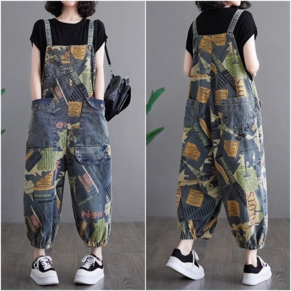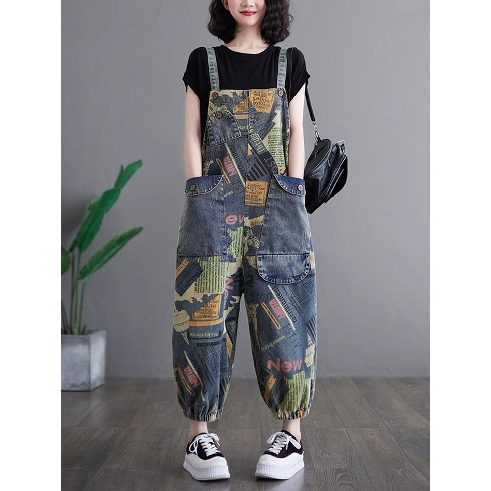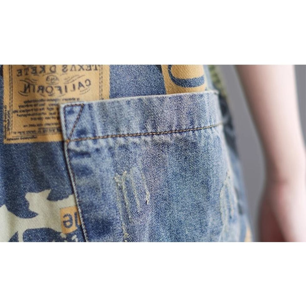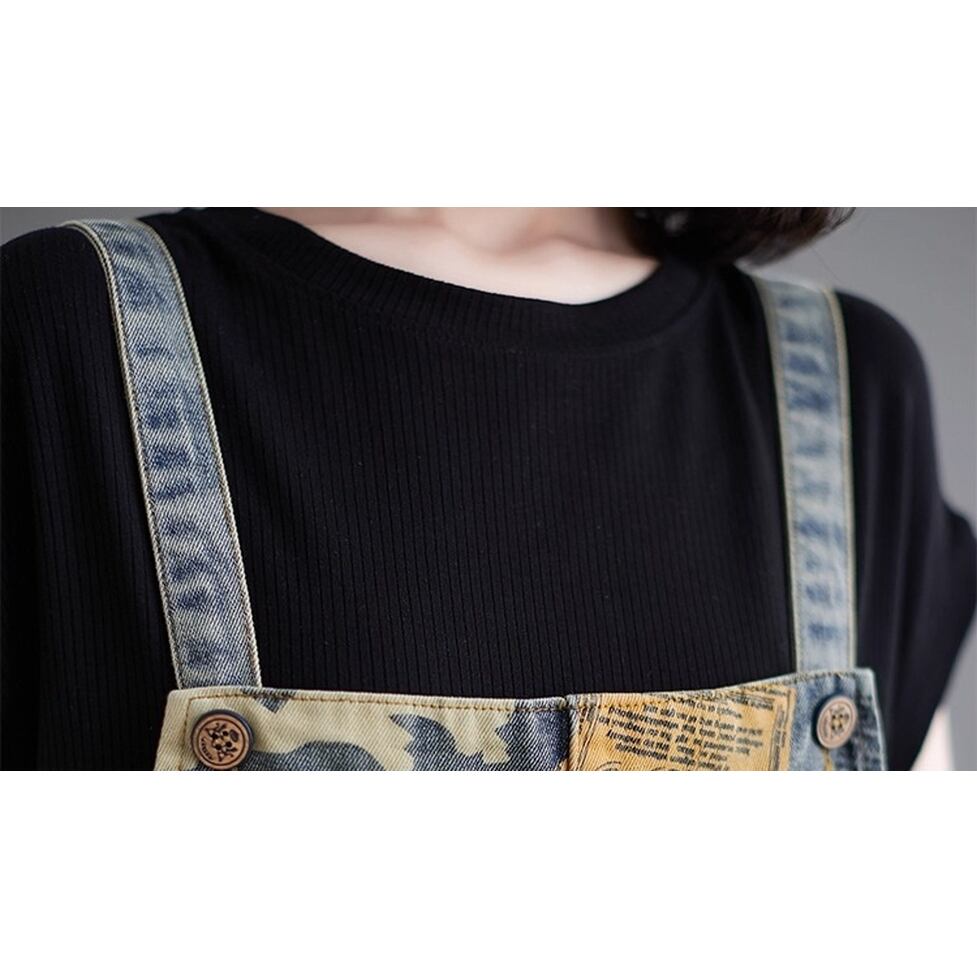 ポップで可愛い英字ランダムプリントのデニムサロペットパンツ。ゆったりとワイドなパンツでリラクシーな印象が漂います。丸いポケットフラップにストラップと同じ色のボタンが好バランス。広めのアームホールでドルマンなどのボリューム感のあるスリーブをインナーに着用しても窮屈感なくサマ見えします。一枚で着映え力抜群な大人カジュアルにおすすめのアイテムです。
