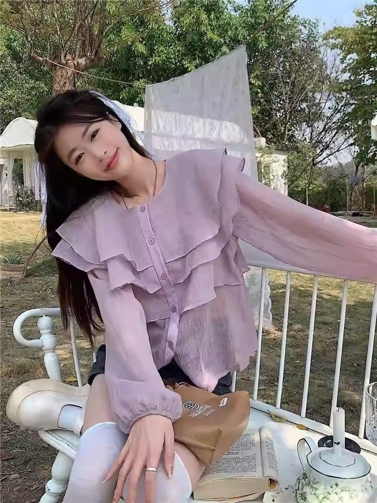 前開きのボタンデザインで着こなしの幅も広く、デートや女子会、カフェタイムなど幅広いシーンで活躍。ホワイトやパープルなどの春らしい大人カラーが、清楚でフェミニンな印象を引き立てます。