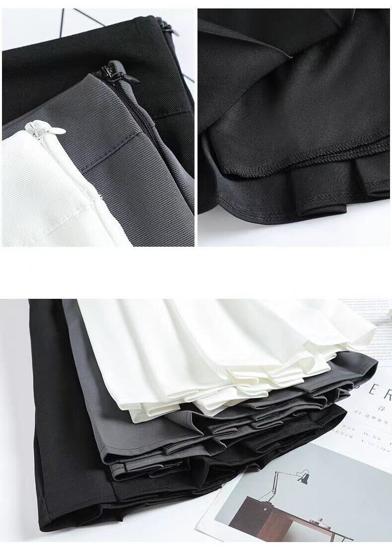 シンプルなインパンツ付きハイウエストプリーツスカート。