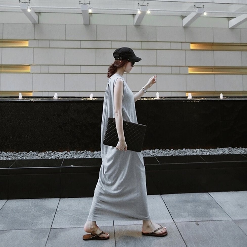 ストンとしたロングシルエットが大人っぽい。ワンサイドのスリットでさりげない脚見せと歩きやすさを追求したノースリーブシャツワンピース。ラクとキレイを両立しながら着回せるスタイルUP効果に優れた名品。立体的なシルエットを構築して腰まわりもすっきりまとまる。どんなスタイルでも端正なイメージをキープしてキレのいい装いに。ナチュラルな風合いが何とでも合わせやすくどこにでも行ける。