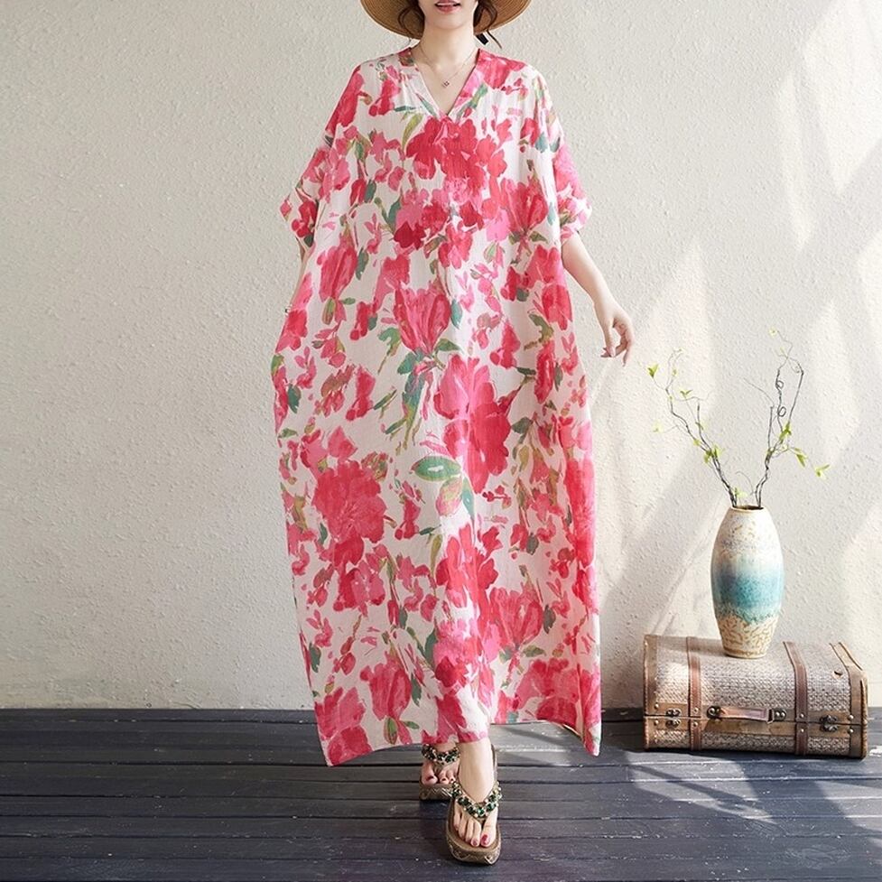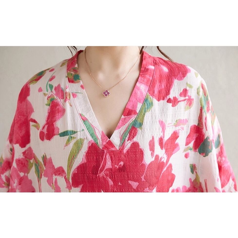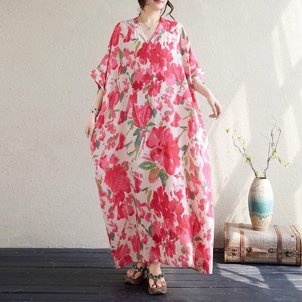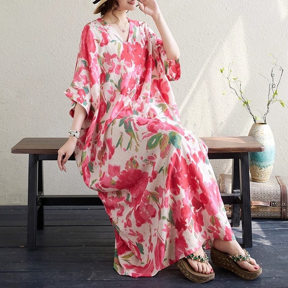 あでやかなボタニカルプリントにナチュラルな風合いの素材がリラクシーな雰囲気を演出するオーバーマキシワンピース。ラクとキレイを両立しながら着回せるスタイルUP効果に優れた名品。立体的なシルエットを構築して腰まわりもすっきりまとまる。どんなスタイルでも端正なイメージをキープしてキレのいい装いに。ナチュラルな風合いが何とでも合わせやすくどこにでも行ける。