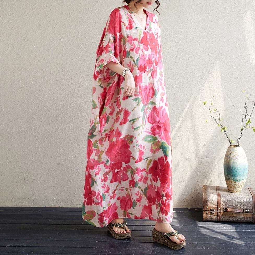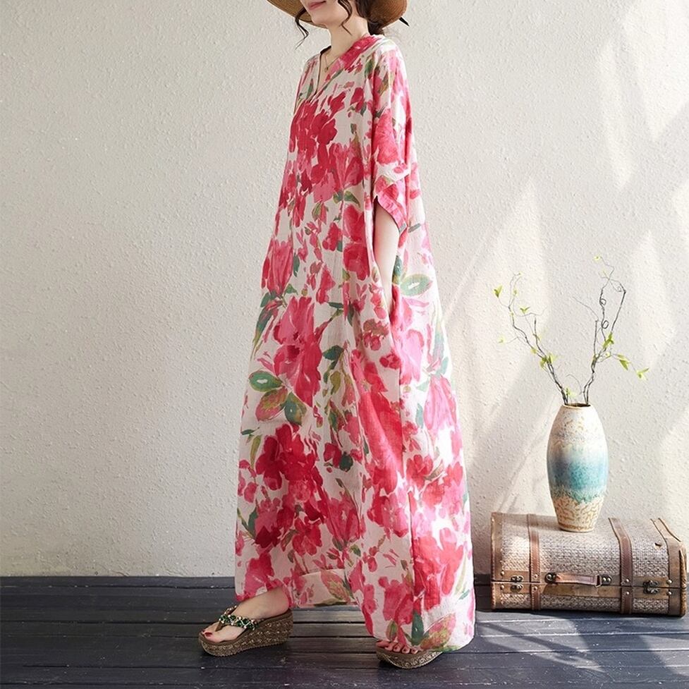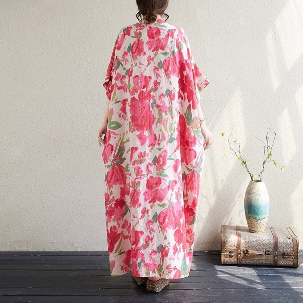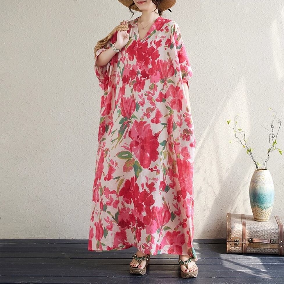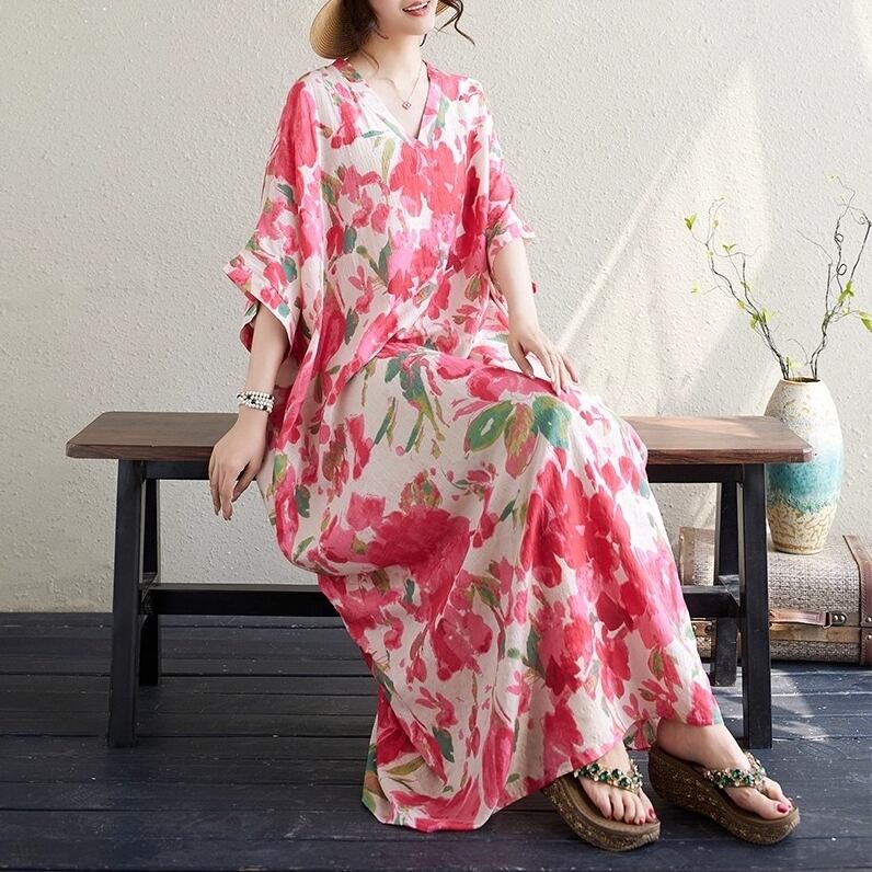 あでやかなボタニカルプリントにナチュラルな風合いの素材がリラクシーな雰囲気を演出するオーバーマキシワンピース。ラクとキレイを両立しながら着回せるスタイルUP効果に優れた名品。立体的なシルエットを構築して腰まわりもすっきりまとまる。どんなスタイルでも端正なイメージをキープしてキレのいい装いに。ナチュラルな風合いが何とでも合わせやすくどこにでも行ける。