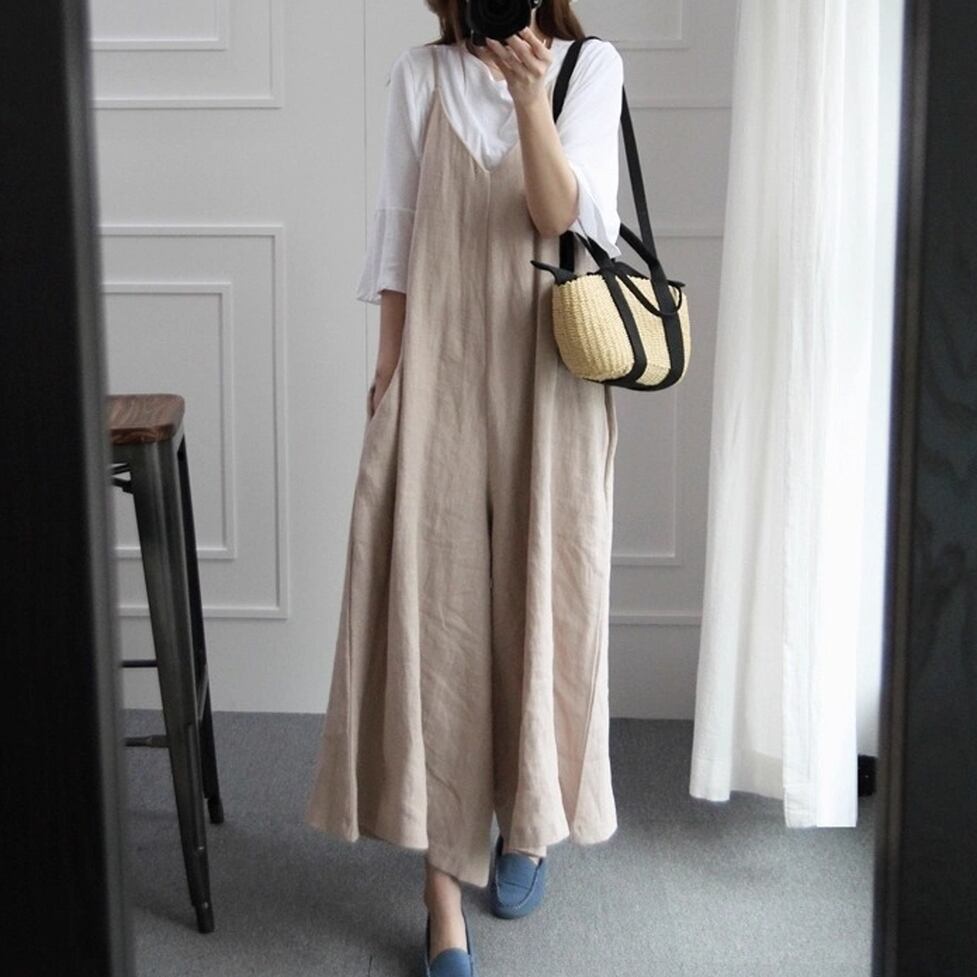 大人っぽく着こなせるシックなデザインのパンツオールインワン。オーバーサイズのトップスも着られるワイドなのにすらりとしたスタイルを実現。ラクとキレイを両立しながら着回せるスタイルUP効果に優れた名品。どんなスタイルでも端正なイメージをキープしてキレのいい装いに。ナチュラルな風合いが何とでも合わせやすくどこにでも行ける。