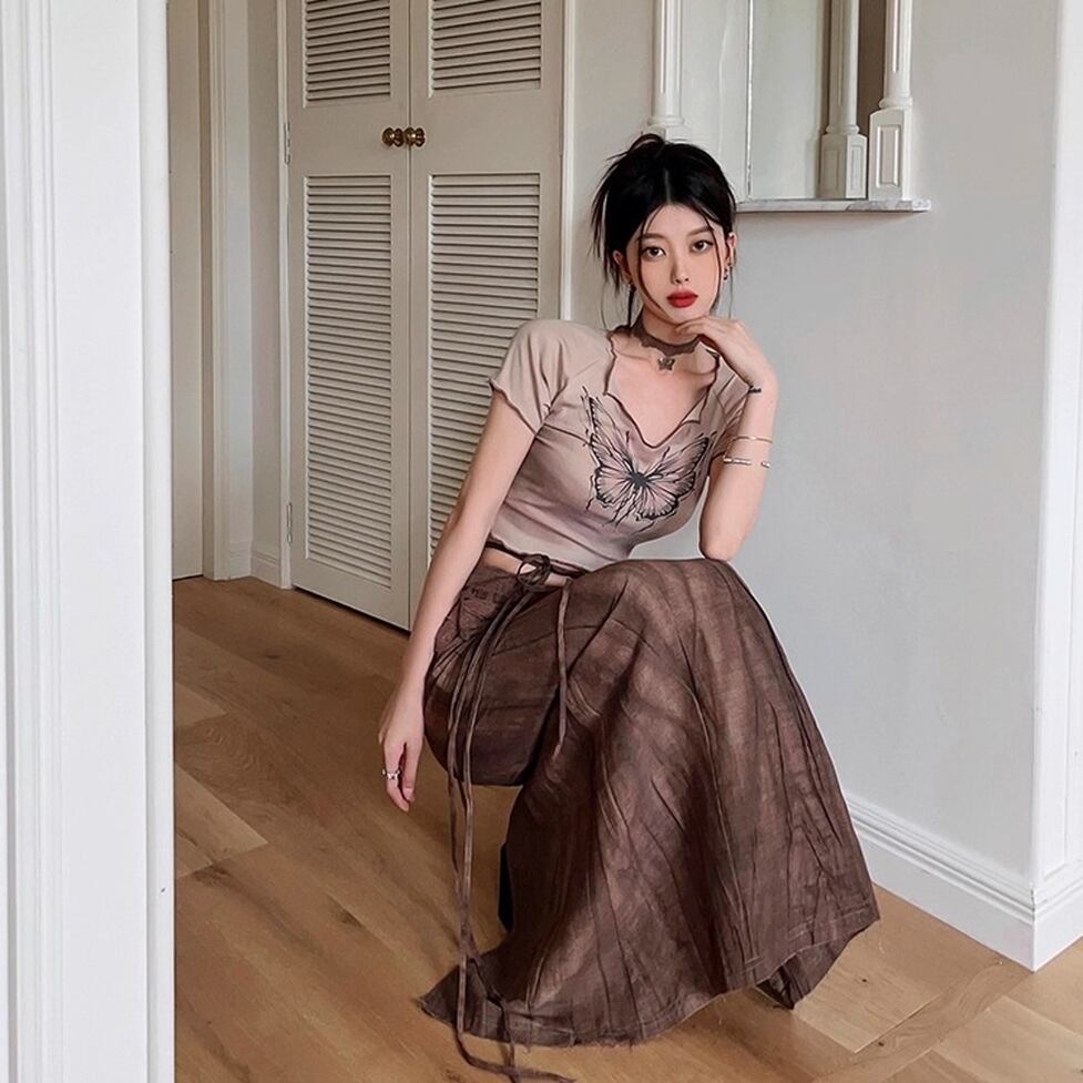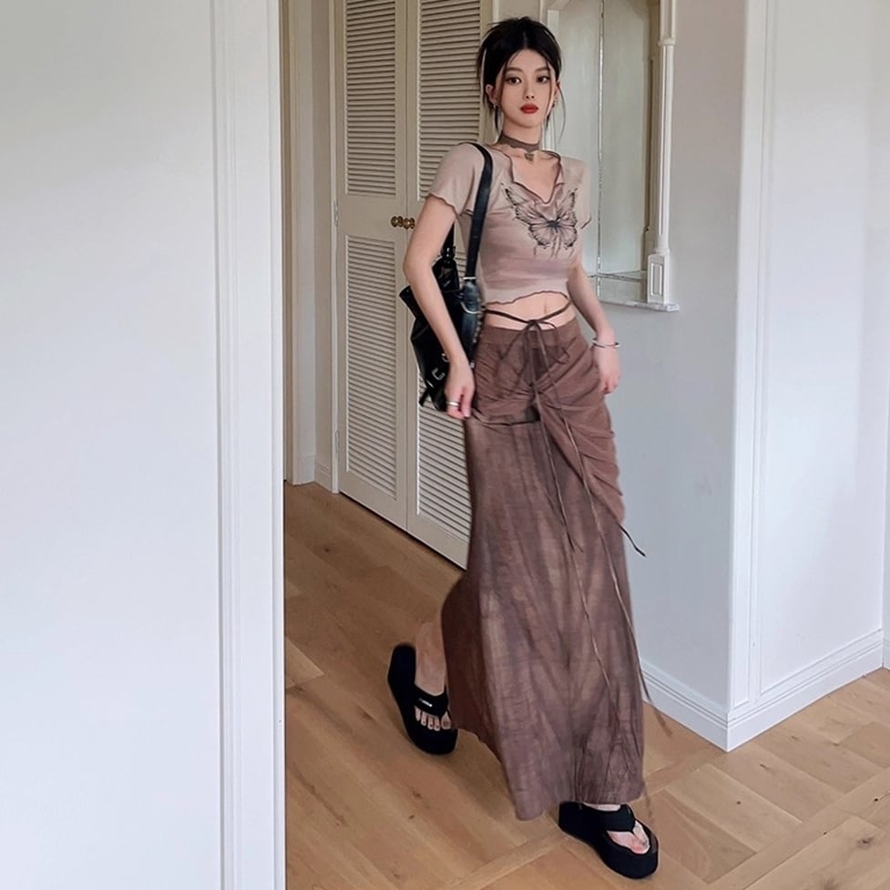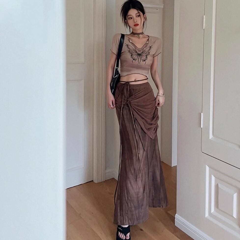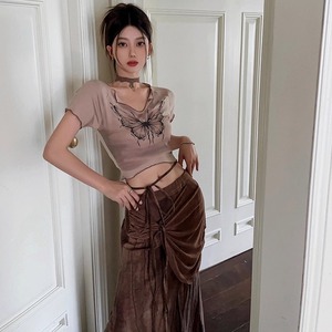 蝶々プリントのクロップドTシャツとサイドギャザーがポイントのタイトスカートのセットアップ。ラクとキレイを両立しながら着回せるスタイルUP効果に優れた名品。立体的なシルエットを構築して腰まわりもすっきりまとまる。どんなスタイルでも端正なイメージをキープしてキレのいい装いに。ナチュラルな風合いが何とでも合わせやすくどこにでも行ける。