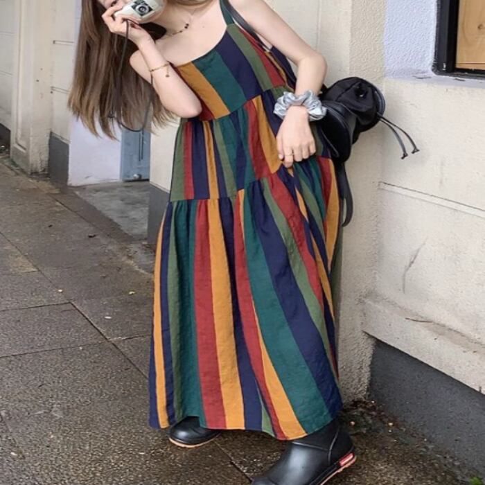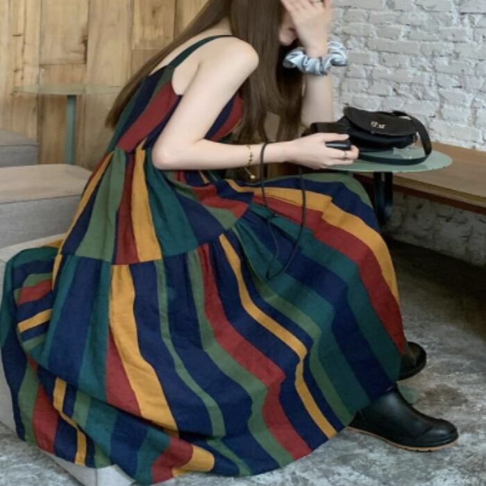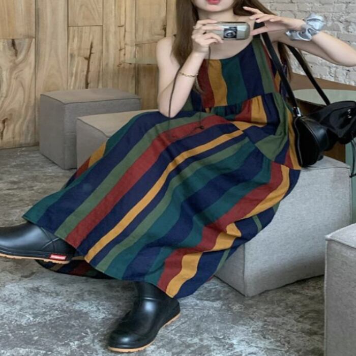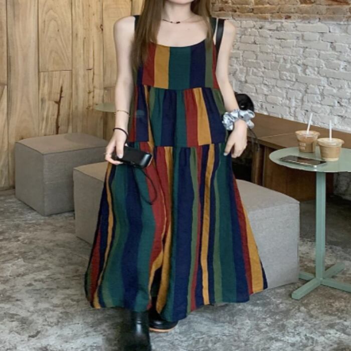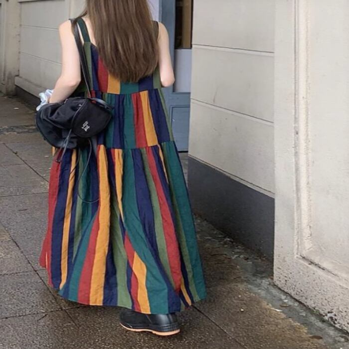 夏にピッタリなノースリーブのロングワンピーススカート