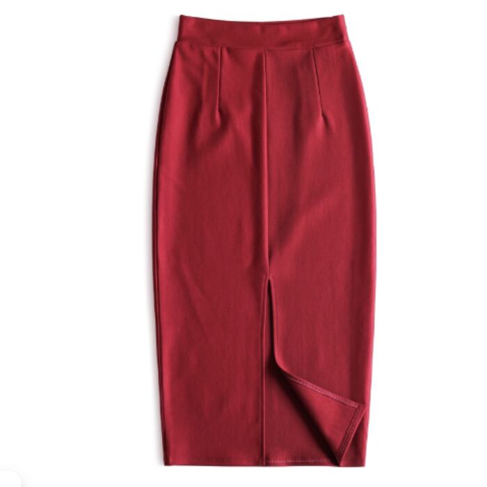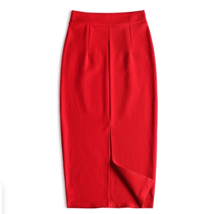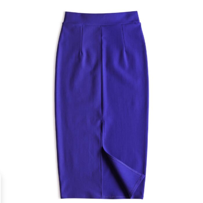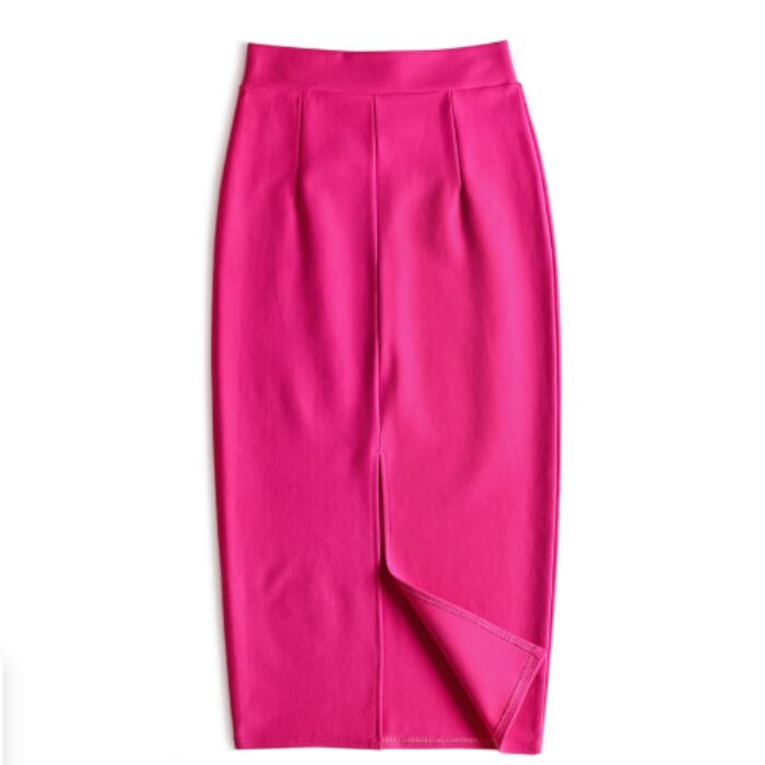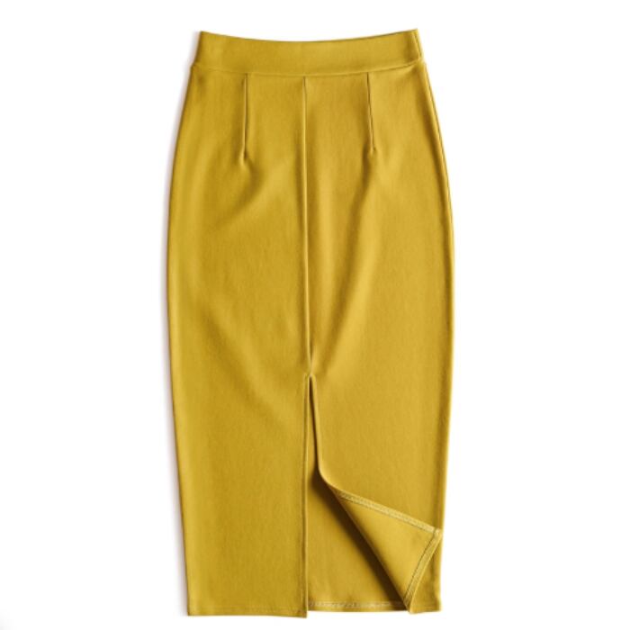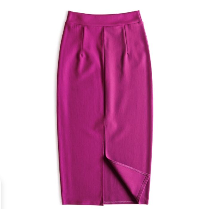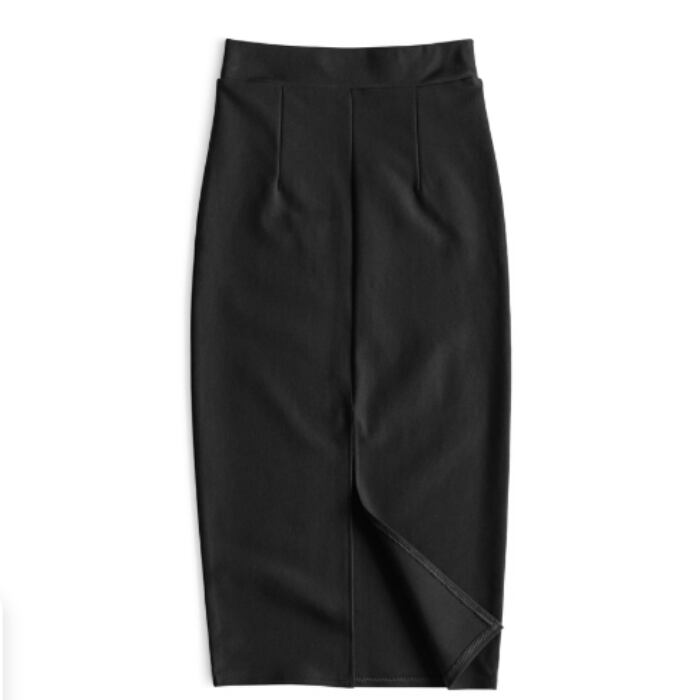 伸縮性のあるミディアム丈のシンプルなスカート