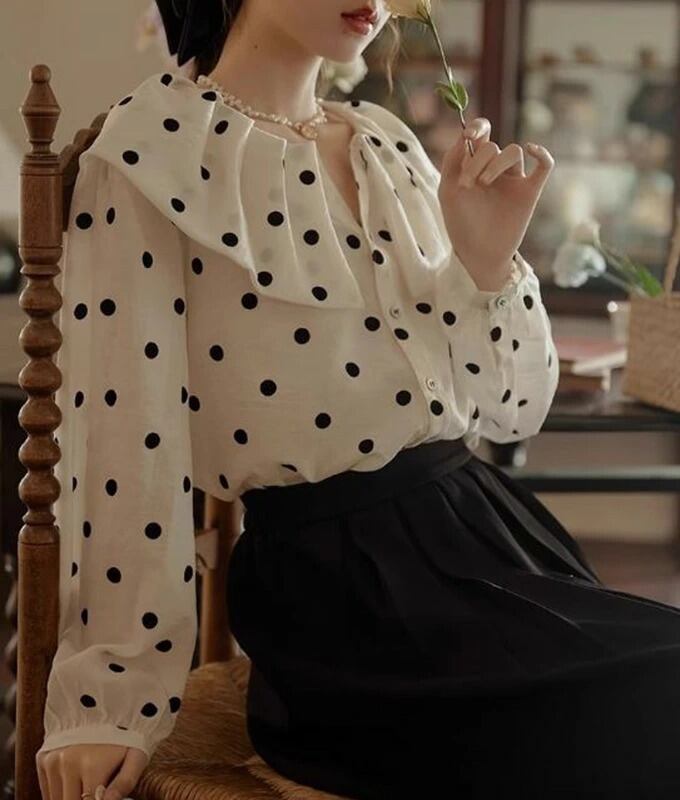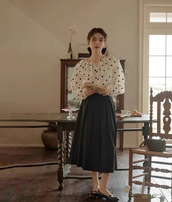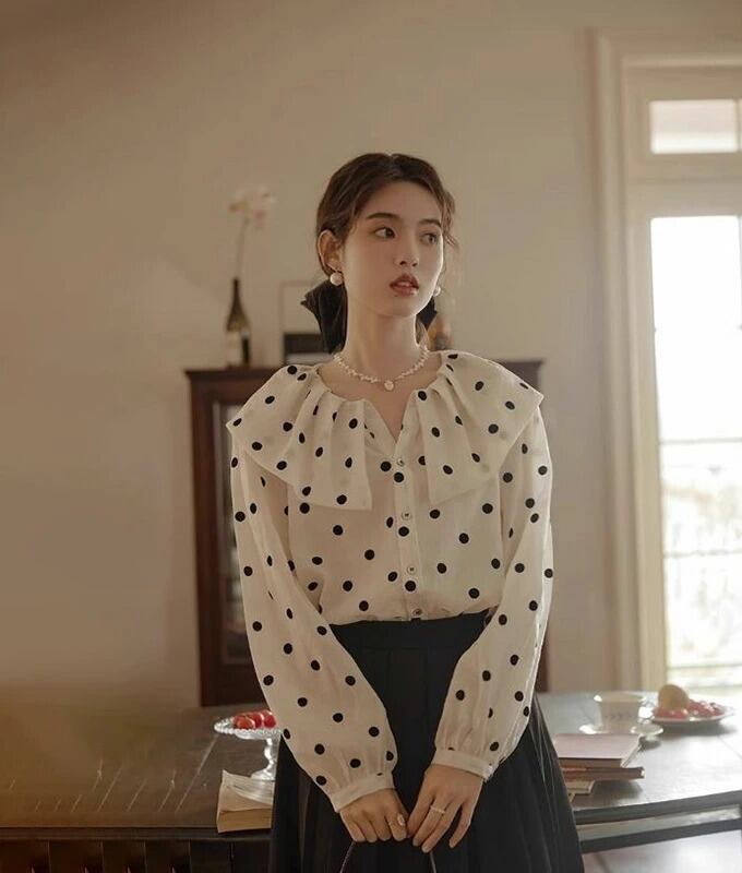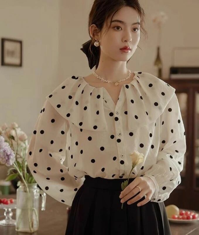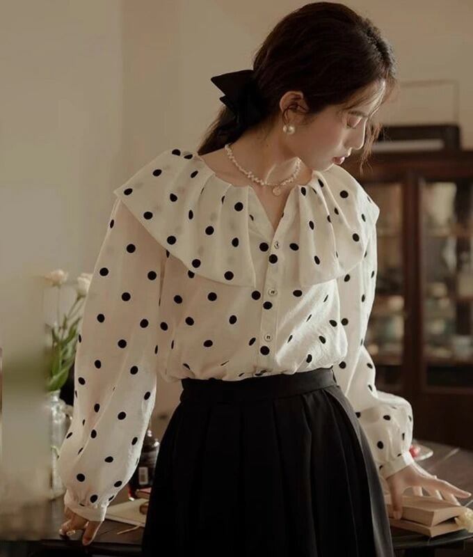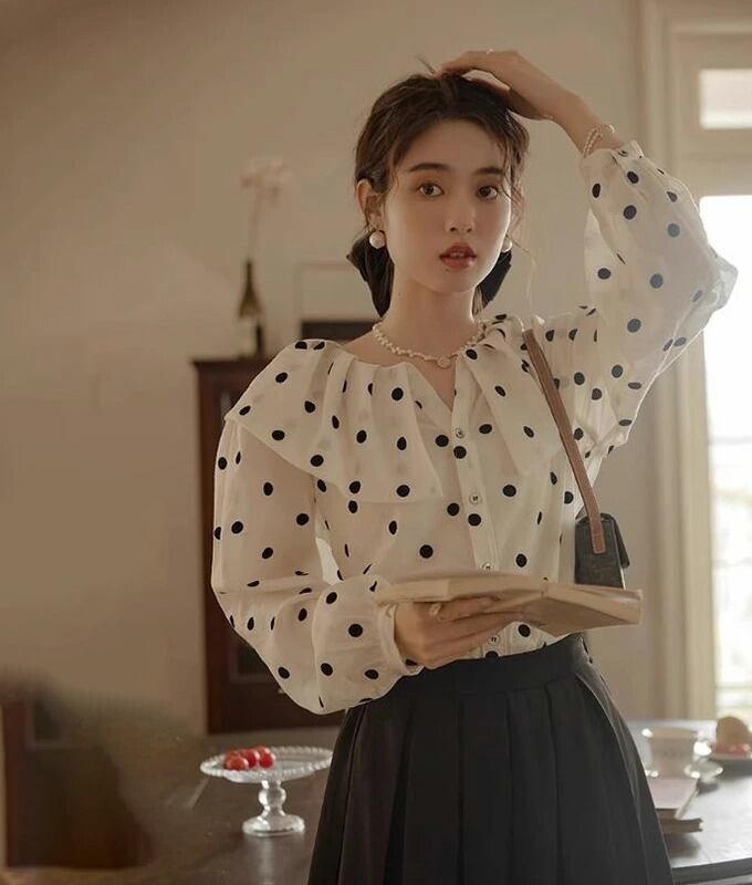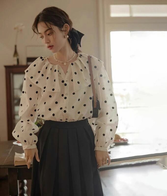 ドット柄のディテールがガーリーで、ナチュラルなこなれ感をプラス。