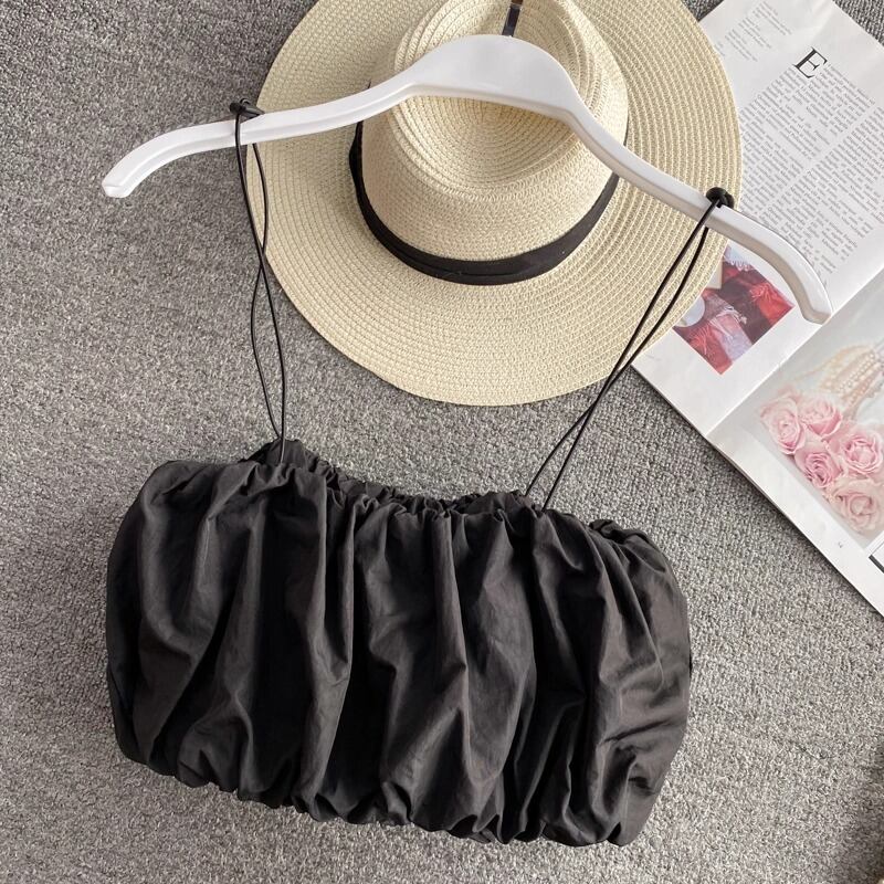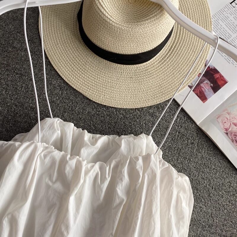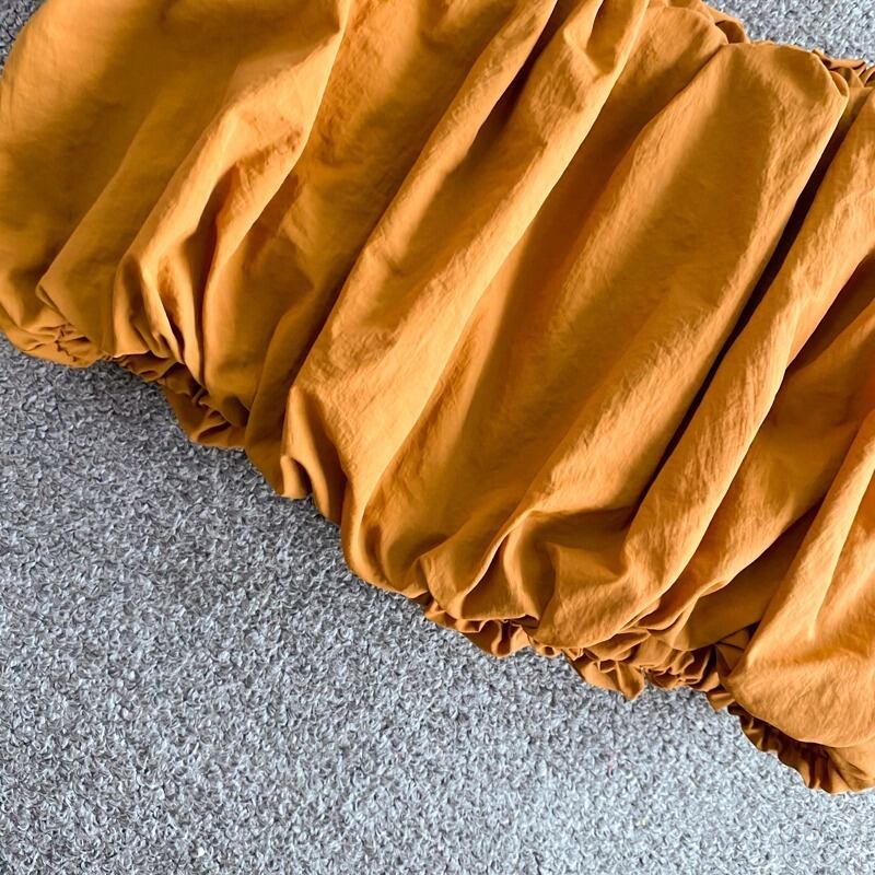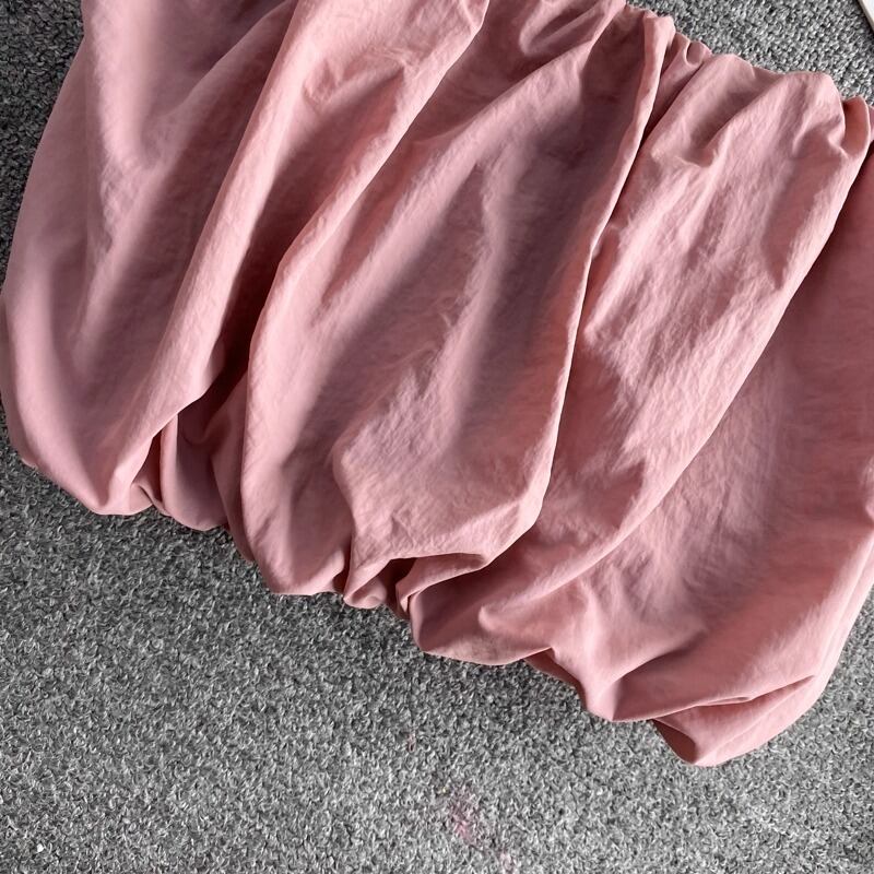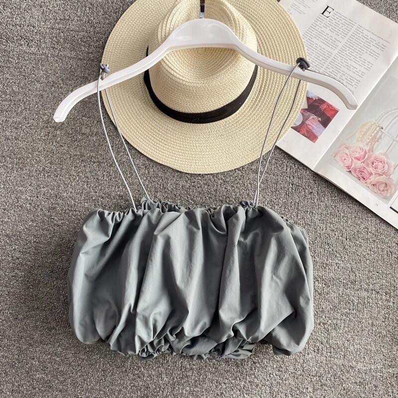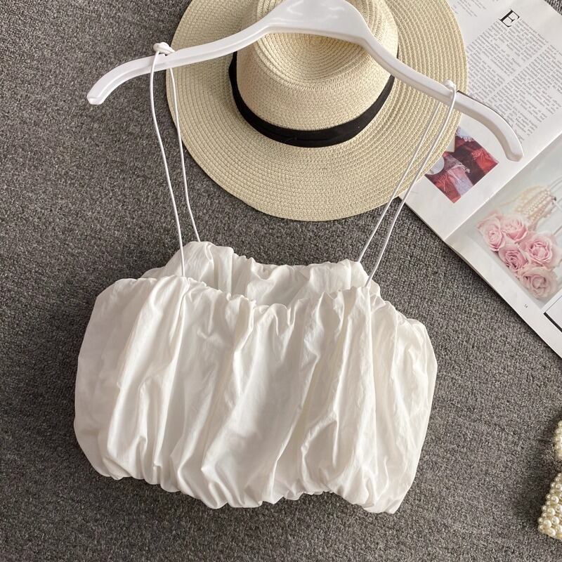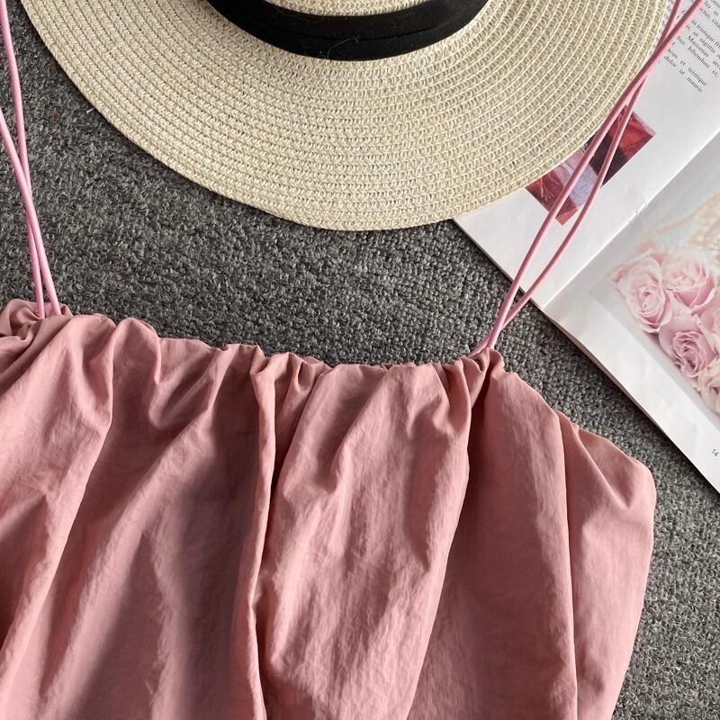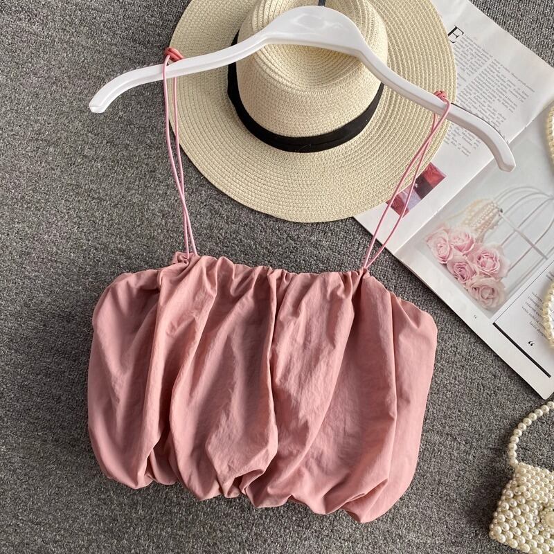 やわらかなギャザーがふんわりとしたシルエットを描く、フェミニンなバルーンキャミソールトップス。
