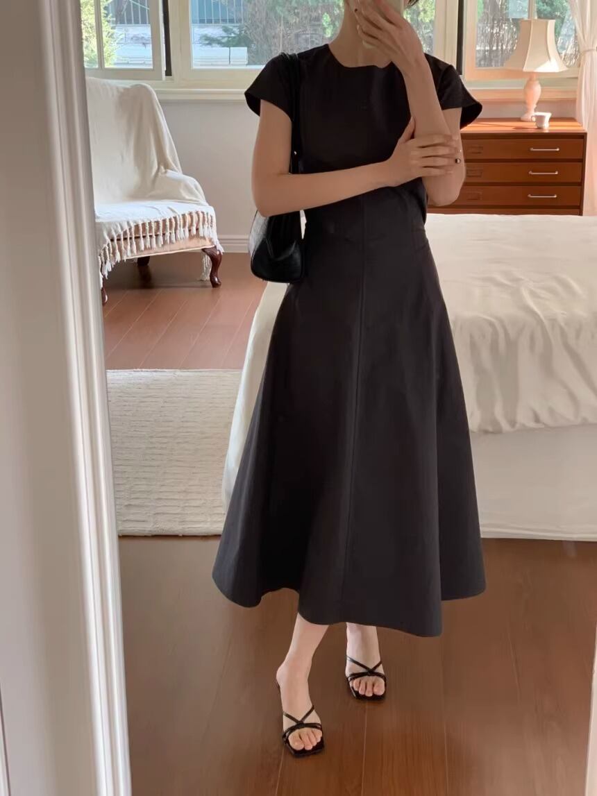 動くたびに揺れるフレアデザインが、夏の日差しに映えるフェミニンな印象を演出。