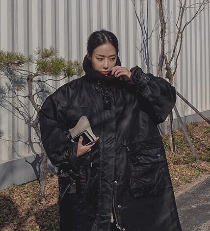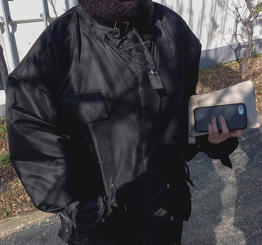 スタンドカラーとオーバーサイズのシルエットが、抜け感のある大人フェミニンな印象を演出します。