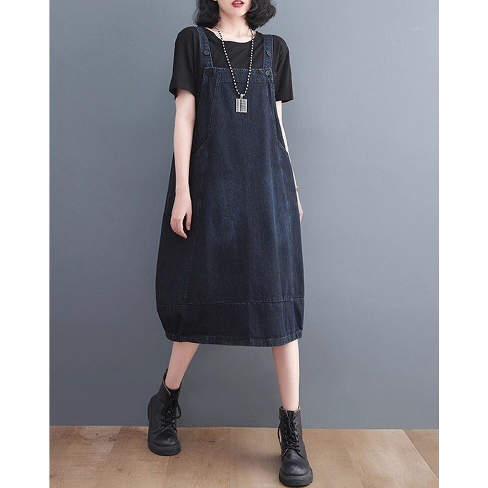 コクーンシルエットのカジュアルなデニムジャンスカ。力んで見えないキレイな服。ラクなのにキレイな疲れないオシャレ。理想的なスタイリングをかなえる。リラックス感をともなったスタイル&バランスUPを両得。気楽なクラシックスタイルが完成。オシャレに新鮮なアイテムを効果的にとり入れたい。
