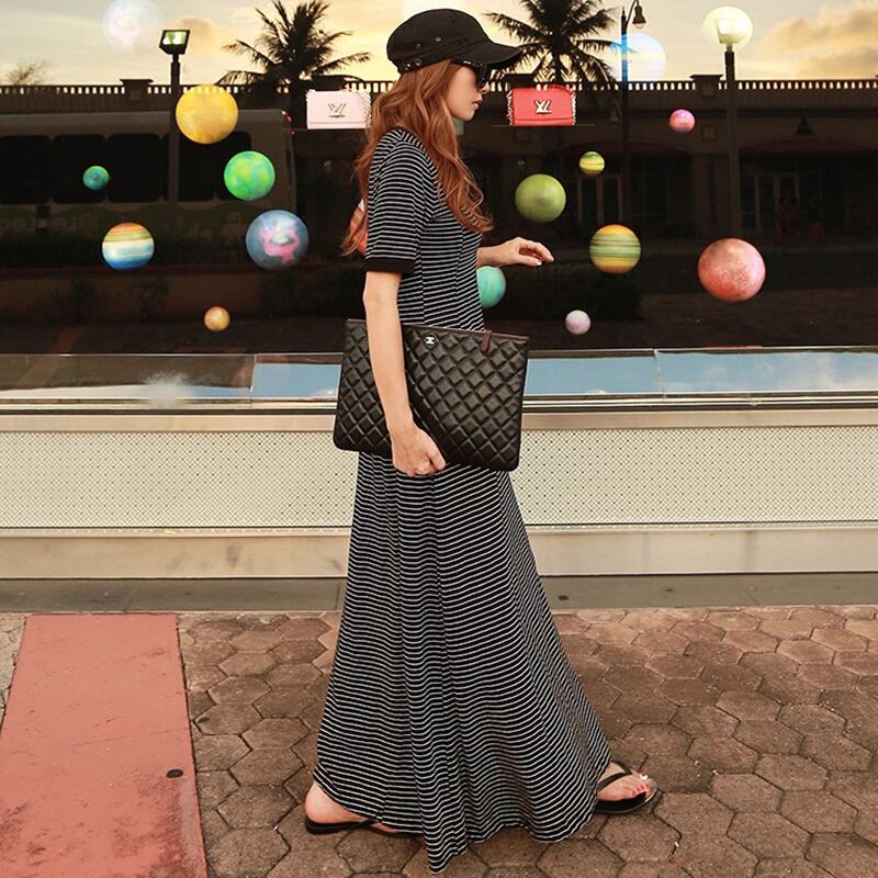 モノトーンの色合いがシックで、女性らしさを引き立てるマキシ丈ワンピースが登場です!